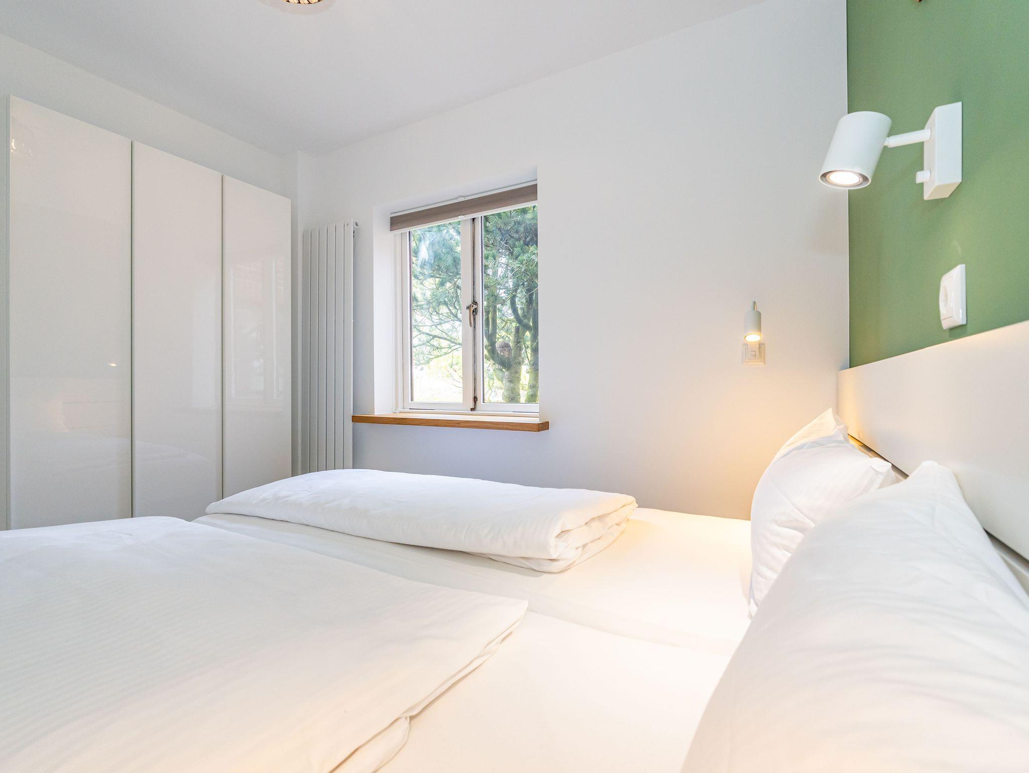 Wohnen in bester Lage und doch mitten in der Ruhe der Natur. Heideland, Wildblumenwiese und sogar ein kleiner Hühnerstall sorgen für ländliche Gemütlichkeit - fußläufig nach Kampen Mitte. Frisch saniert erreichen Sie dieses schmucke Appartement für bis zu Vier Sie einen Pfad durch den naturbelassenen Garten und betreten es direkt im Wohnbereich. Bequeme Polstermöbel, ein Esstisch für gemütliche Runden, Zugang zur Südterrasse mit Strandkorb und eine halboffene voll ausgestattete Küche erwarten Sie hier. Über den Flur, vorbei am kleinen und ganz neuen Duschbad, teilt sich der Weg in zwei Doppelzimmer mit zwei Bettvarianten - zu stellen jeweils als ein Doppel- oder zwei Einzelbetten. Das Quartier ist mit Designboden in Holzoptik ausgelegt. Landhausstil gemixt mit stylischen Elementen, eine Terrasse mit fast den ganzen Tag über Sonne und Weitblick über die Heide.
