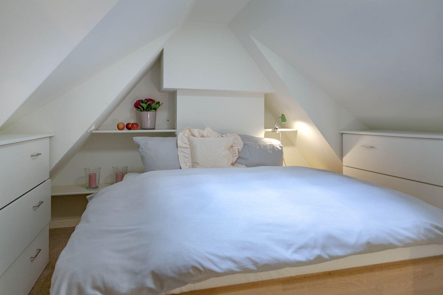 Über eine Treppe gelangen Sie auf die Galerie ins gemütliche Schlafzimmer mit komfortablem Doppelbett für erholsame Nächte.