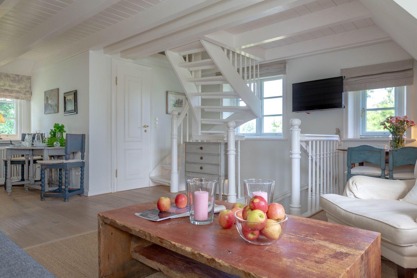 Stilvolle Galeriewohnung mit Terrasse und Strandkorb in Kampen, ideal zum Wohlfühlen und Entspannen.