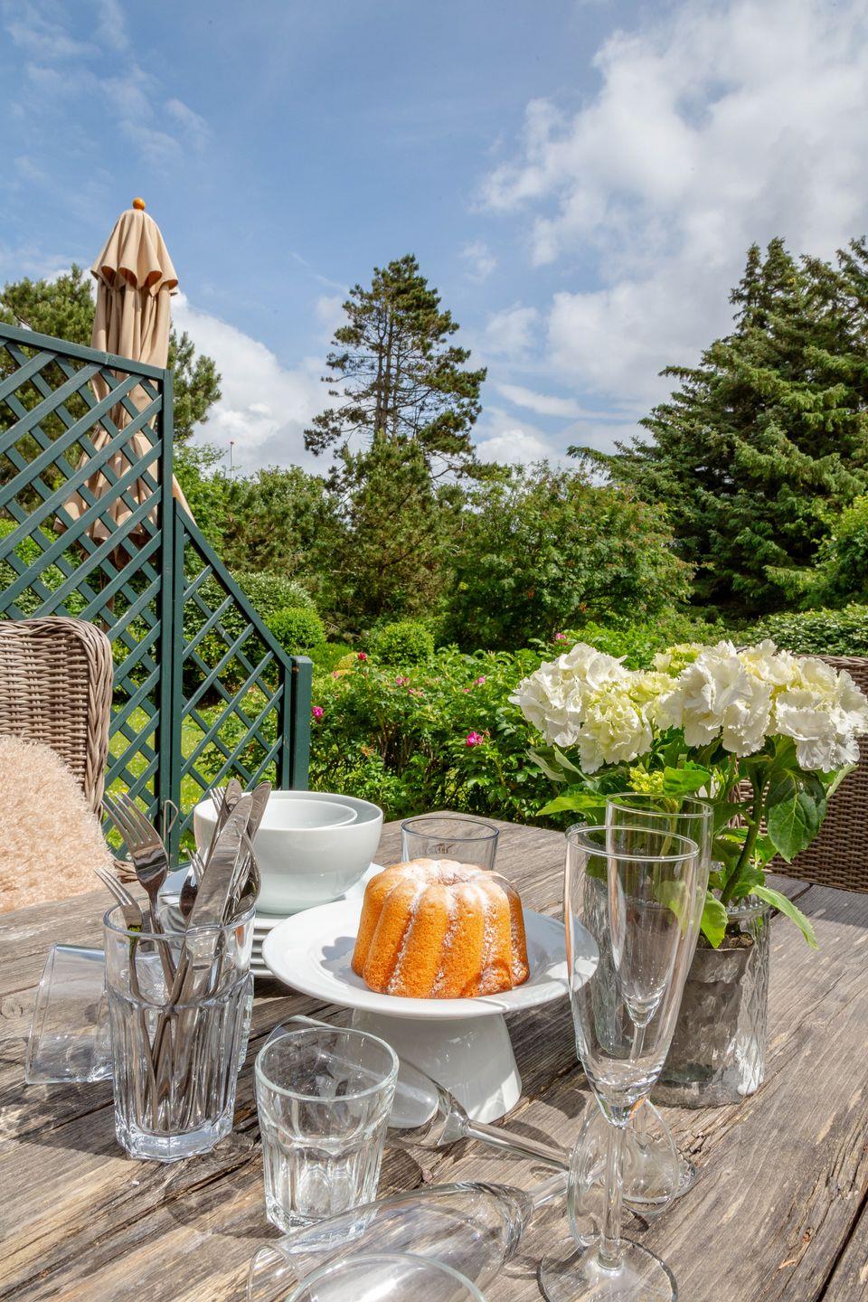 Vom Wohnraum aus gelangen Sie direkt auf die eigene mit Gartenmöbeln bestückte Terrasse.