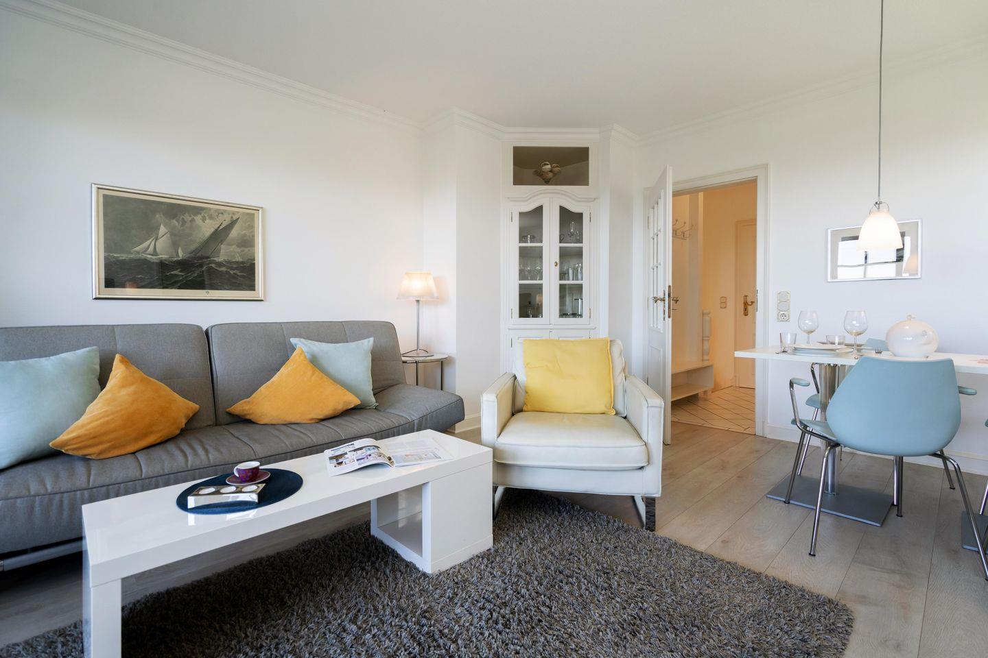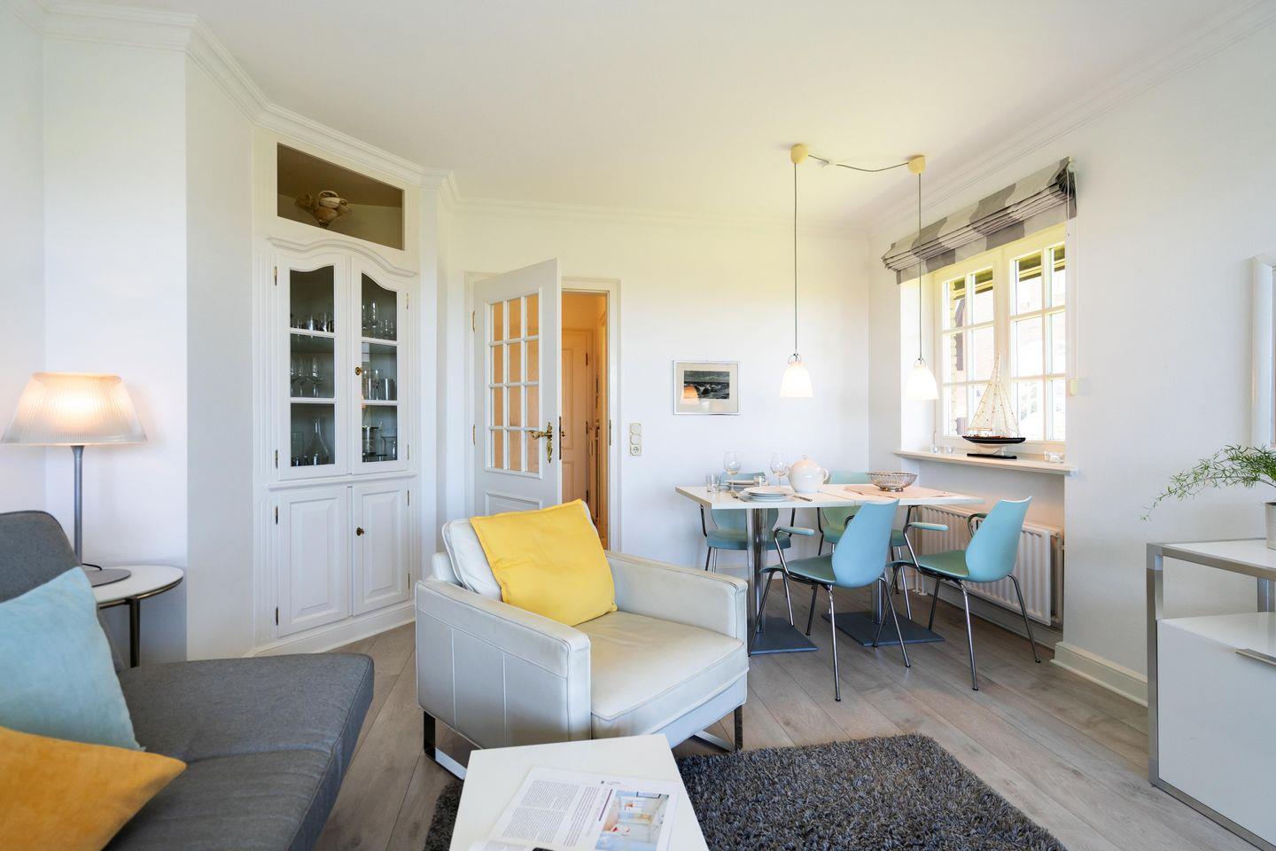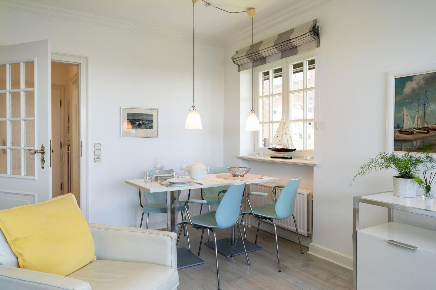 Modernes, ca. 55 m² großes, hell gestaltetes Ferienapartment für bis zu 2 Personen im Westen Kampens. Genießen Sie entspannte Urlaubstage mit allem Komfort: Das App. verfügt über eine schöne Terrasse samt Meerblick, WLAN sowie kostenfreie, öffentliche Parkmöglichkeiten an der Straße.