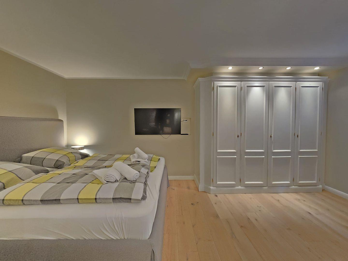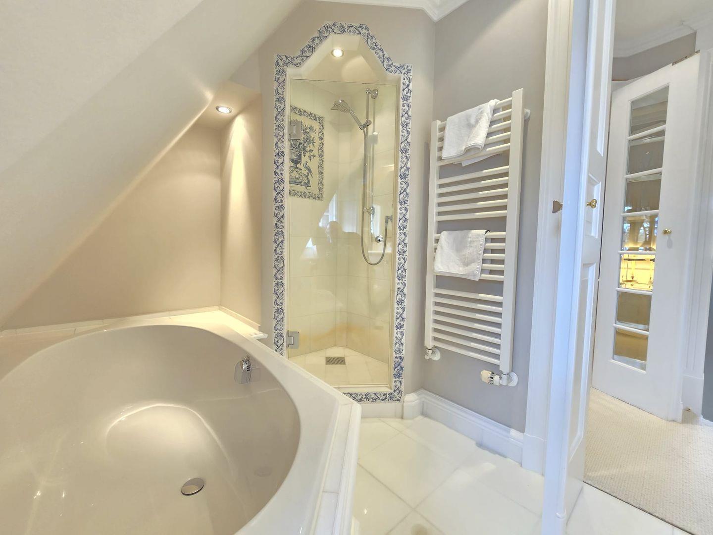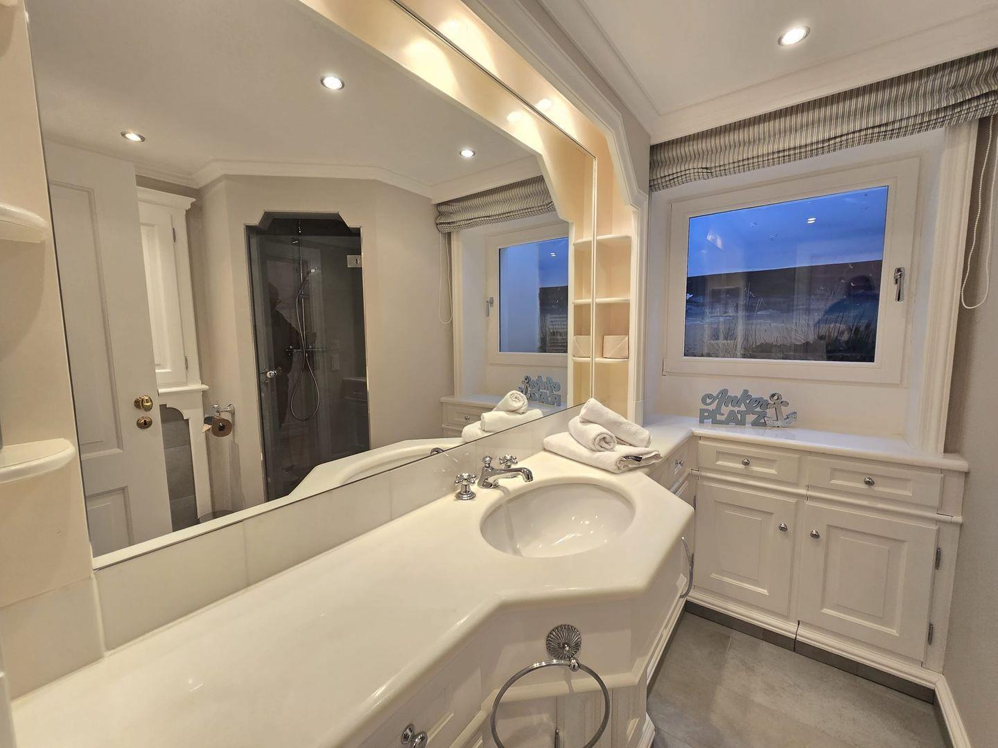 Im Souterrainbereich steht Ihnen ein schön gestalteter Raum mit einem großen Boxspringbett (1,80 m x 2,00 m) und einer Schlafcouch zur Verfügung. Benachbart empfängt Sie ein weiteres Badezimmer mit Dusche.