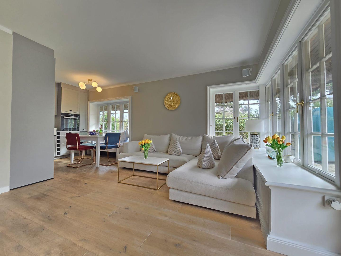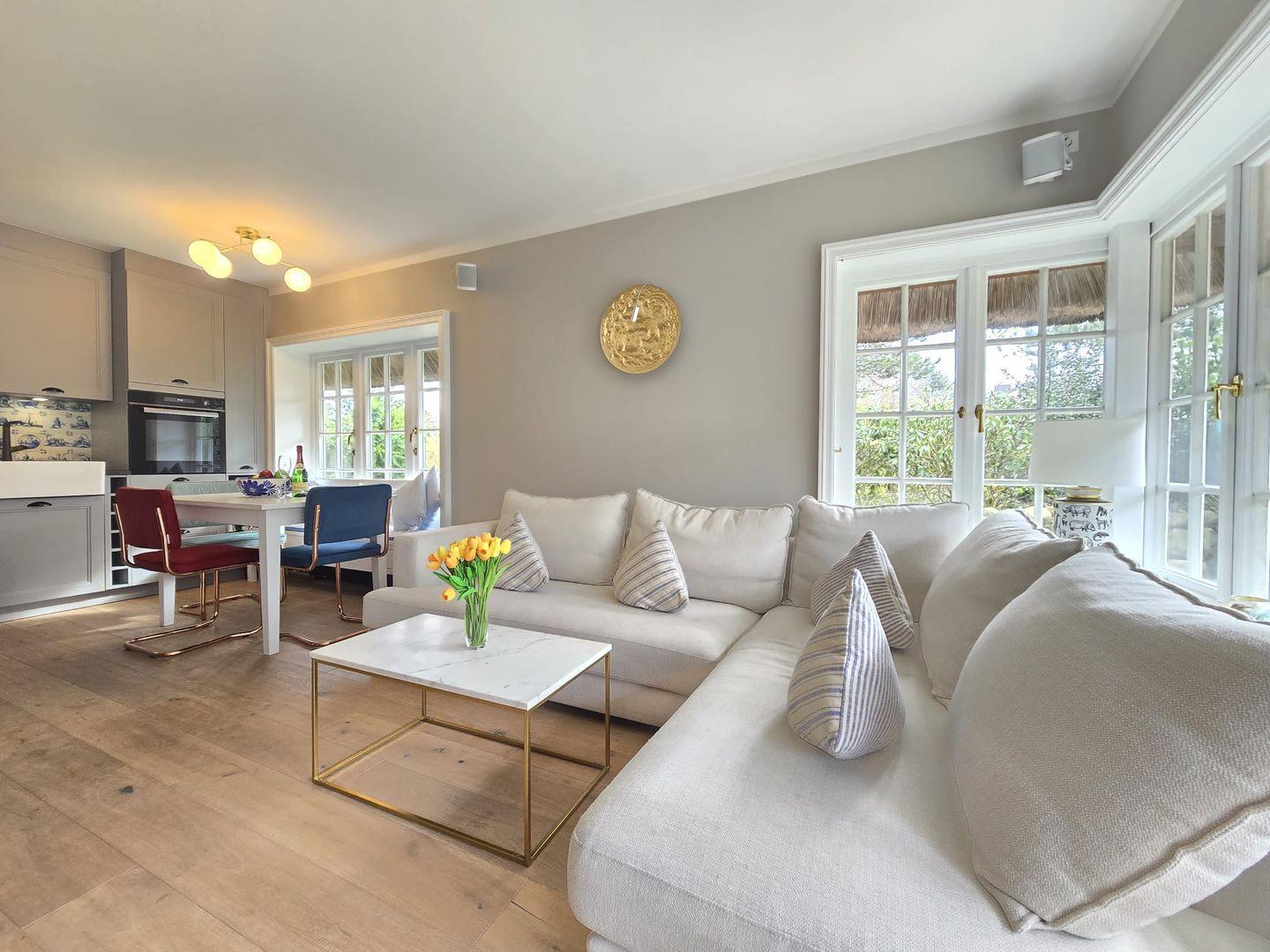 Exklusives Ferienhaus unter Reet in Kampen auf Sylt mit Sauna, Garten und moderner Ausstattung für erholsame Urlaubstage.
