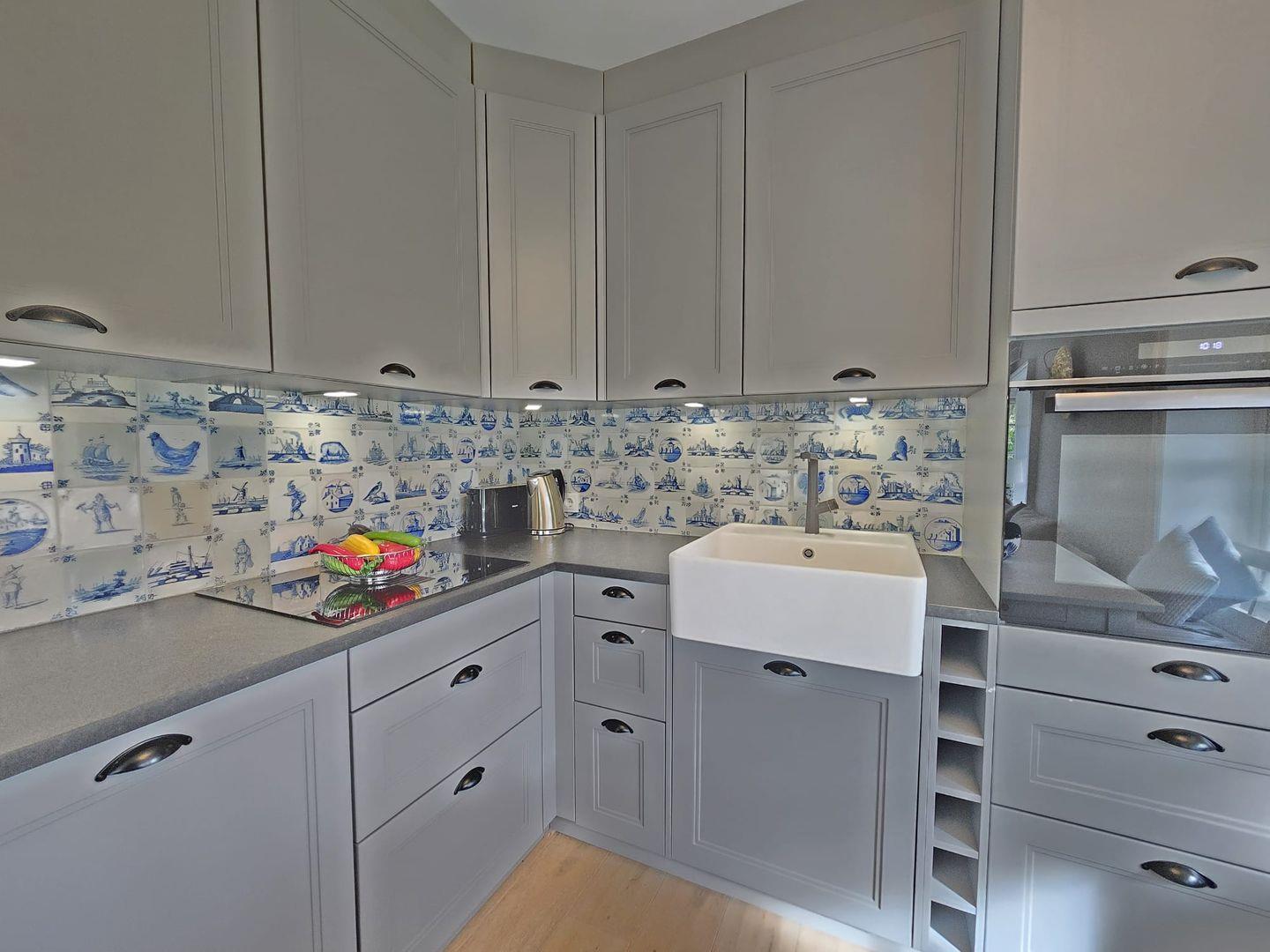 Im Erdgeschoss befindet sich ein offener Wohn-/Essbereich mit einer modernen Küche. Der helle Wohnraum verfügt über eine einladende Wohnlandschaft, die zu einem gemütlichen Fernsehabend vor dem Flatscreen-TV einlädt. Die Küche ist voll ausgestattet und bietet Ihnen u. a. ein Induktionskochfeld, einen Geschirrspüler, einen Backofen, eine Nespresso Maschine.