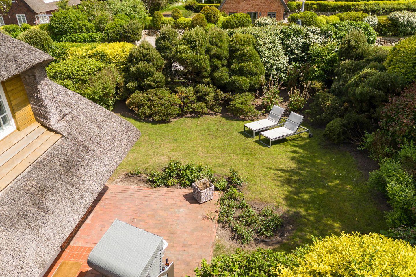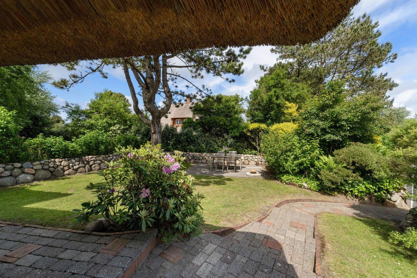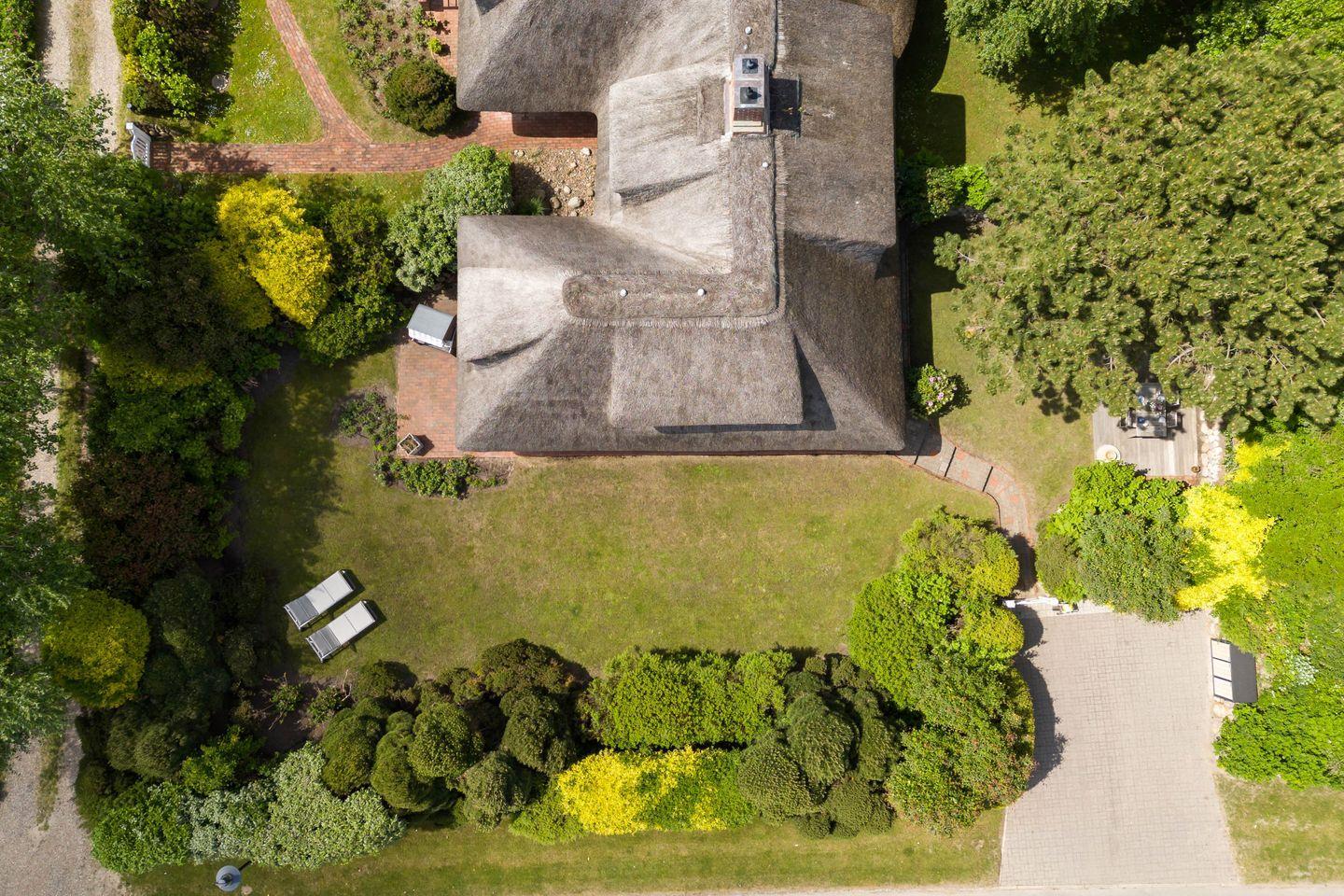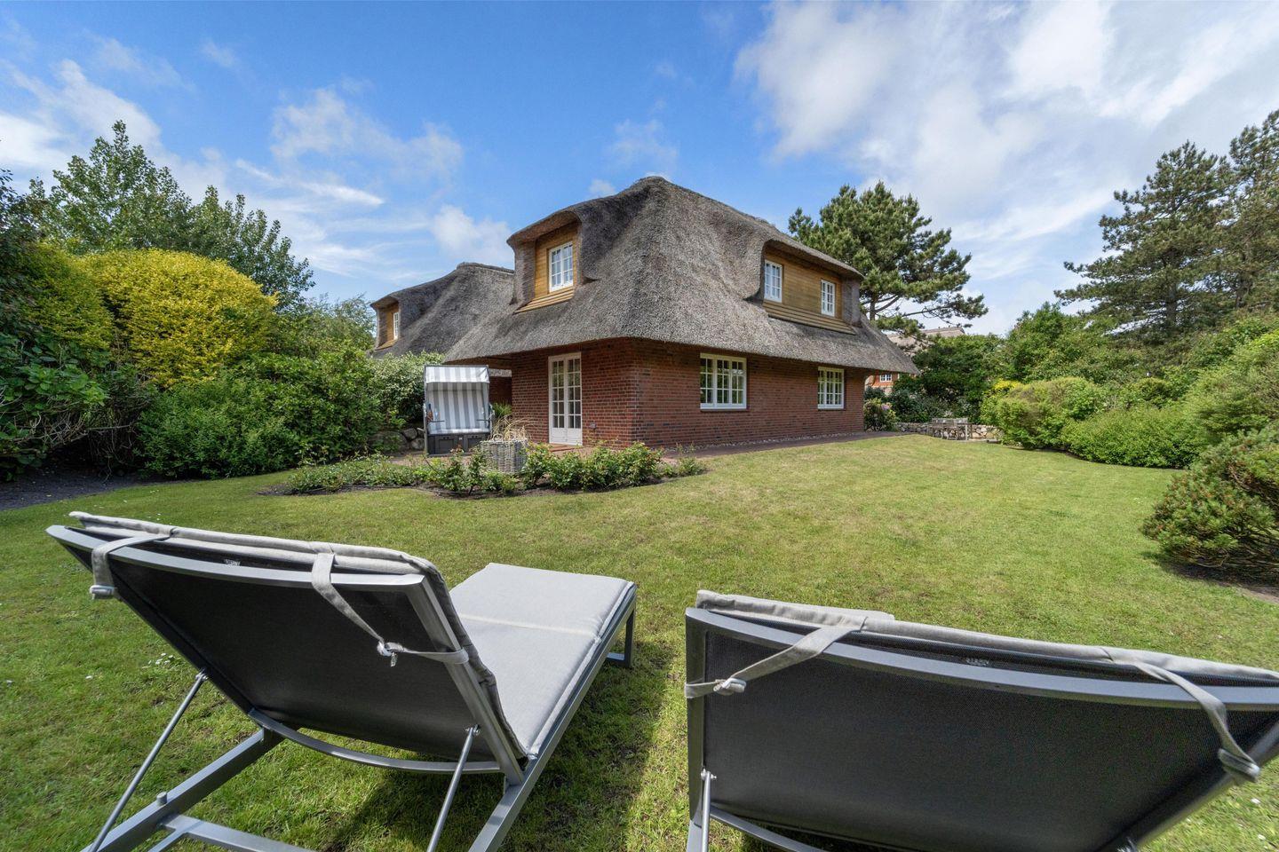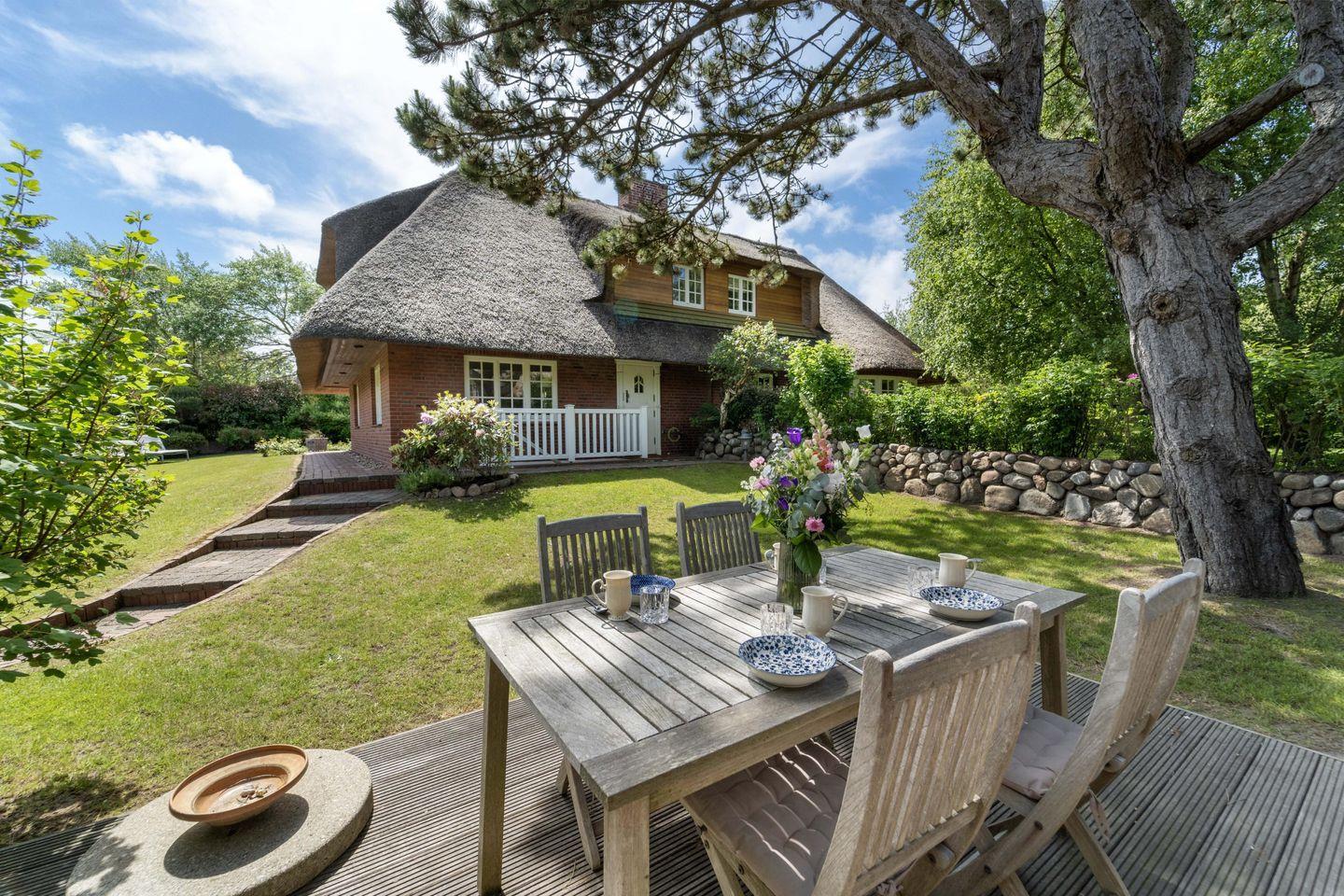 Exklusives reetgedecktes Ferienhaus in Kampen auf Sylt mit Garten, Terrasse und gehobener Ausstattung für erholsame Urlaubstage.