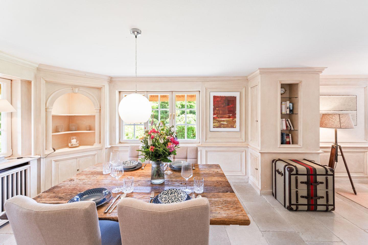 Im offenen Wohn- und Essbereich empfängt Sie eine behagliche Atmosphäre. Weiche Sofas laden zu gemütlichen Stunden bei einem Glas Wein ein, während der großzügige Esstisch aus friesischem Holz der perfekte Ort für gemeinsame Mahlzeiten oder gesellige Abende ist. Große Fenster lassen viel Tageslicht herein und bieten Ausblicke auf den liebevoll angelegten Garten.