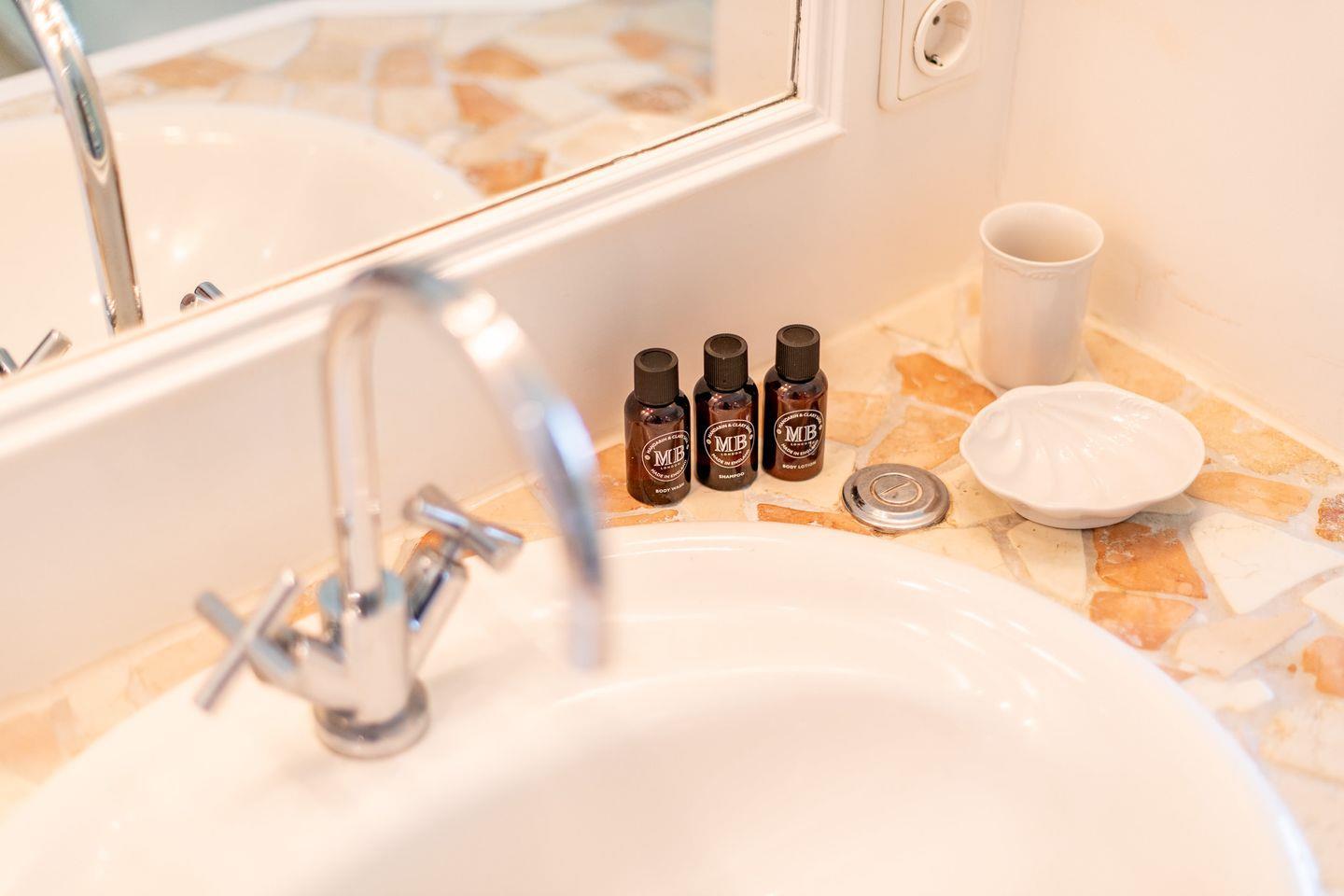 Das moderne Badezimmer ist lichtdurchflutet und mit einer belebenden Dusche sowie einem Föhn ausgestattet – ideal, um erfrischt in den Tag zu starten. Ein separates Gäste-WC bietet zusätzlichen Komfort.