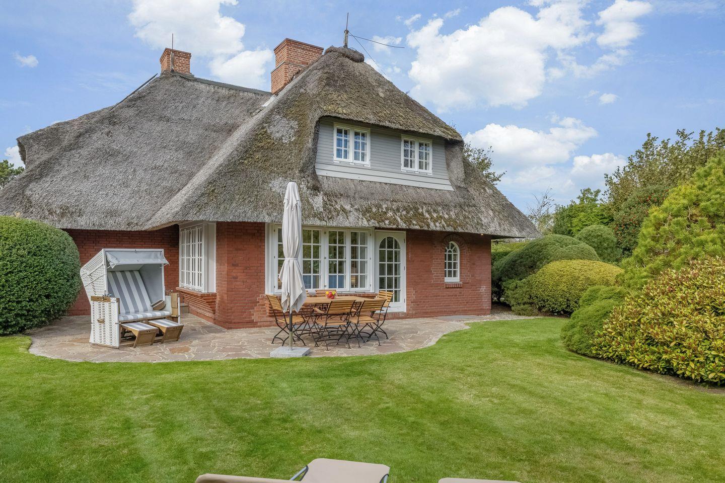 Exklusives Reetdachhaus in Kampen mit Sauna, Kamin, Garten und WLAN für erholsame Ferien.