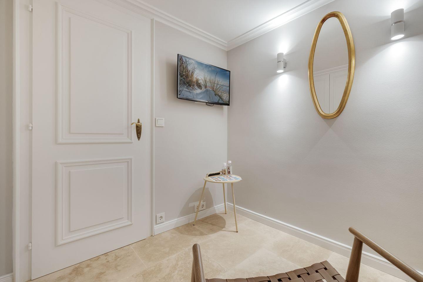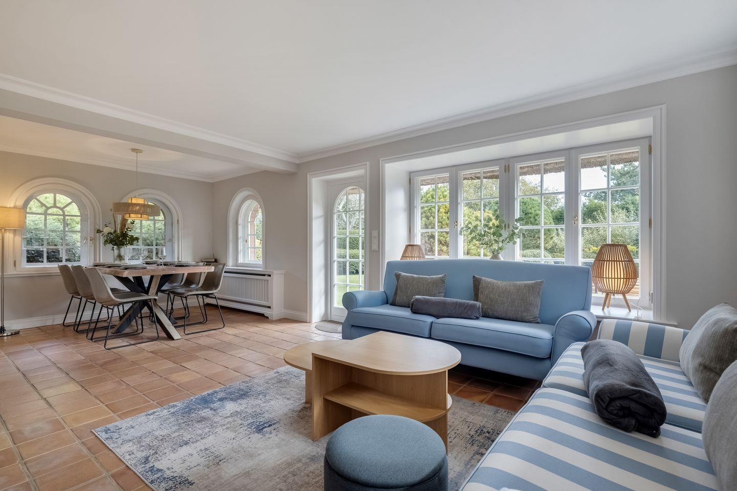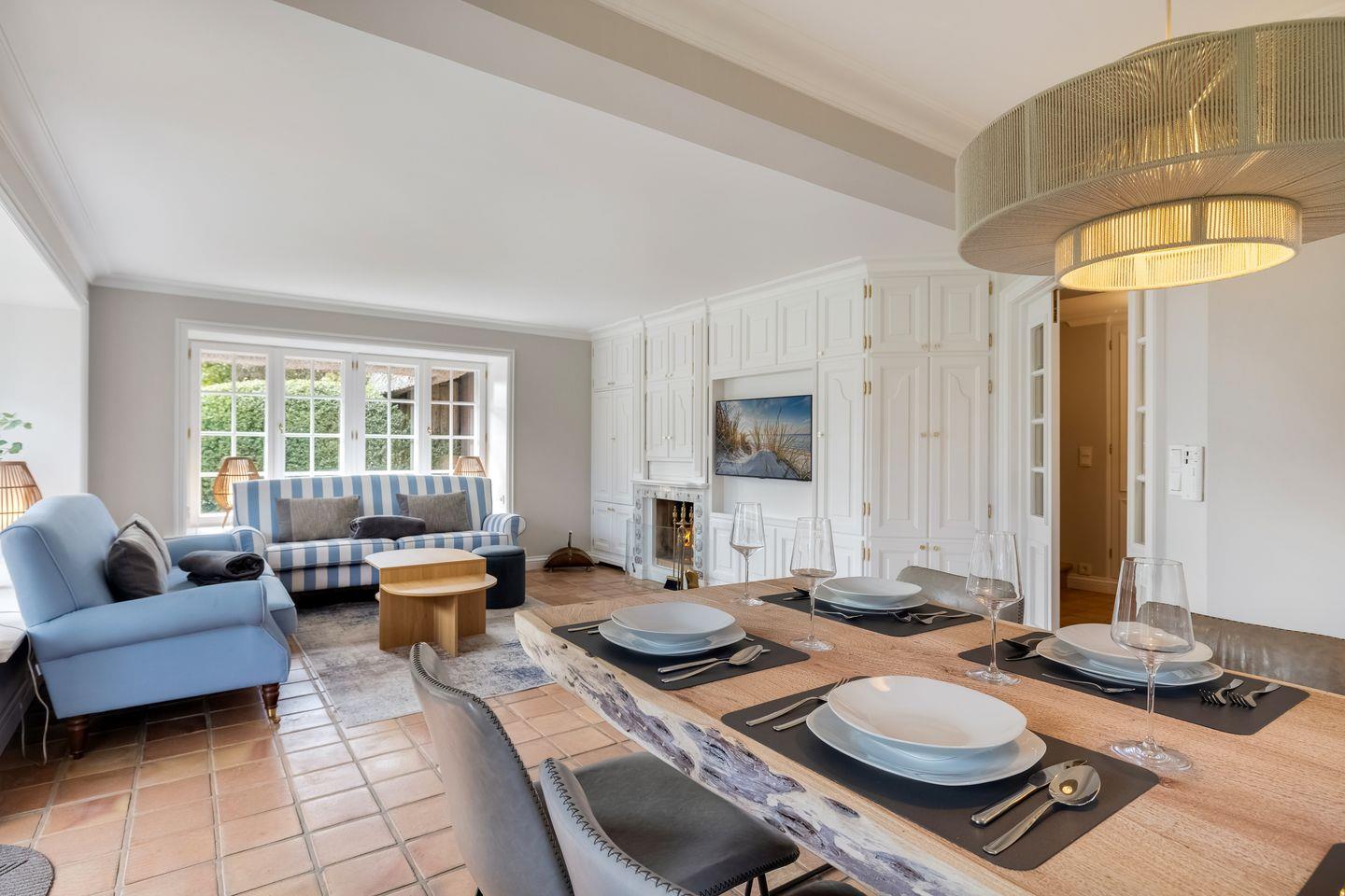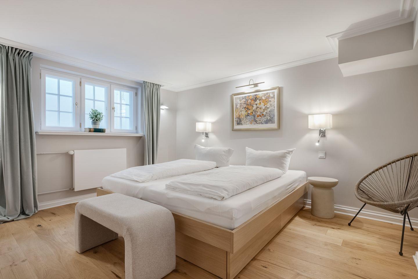 Diese im Jahr 2025 vollständig sanierte, exklusive Hausscheibe unter Reet bietet auf ca. 90 m² eine großzügige Wohnfläche und bietet Platz für bis zu 6 Personen. Die ruhige, idyllische Lage in Kampen stellt den perfekten Ausgangspunkt dar, um sowohl das malerische Watt im Osten als auch die lebendige Innenstadt von Kampen bequem zu Fuß zu erreichen. Im Erdgeschoss empfängt Sie ein lichtdurchfluteter, offener Wohn- und Essbereich, der dank einer beeindruckenden Fensterfront einen herrlichen Blick auf den eigenen Garten freigibt. Die moderne, offene Küche ist mit hochwertigen Geräten bestens ausgestattet. Das Obergeschoss beherbergt ein gemütliches Doppelschlafzimmer sowie ein weiteres Schlafzimmer mit zwei Einzelbetten. Das elegante Tageslichtbad ist mit einer Dusche ausgestattet und bietet alles für eine erfrischende Auszeit. Im Souterrain erwartet Sie ein großzügiges Doppelschlafzimmer, ein zusätzliches Duschbad und ein Wellnessbereich mit einer Sauna – der perfekte Ort, um zu entspannen. Alle Schlafräume und das Wohnzimmer sind mit Smart-TVs ausgestattet, um Ihnen Unterhaltung und Komfort zu bieten. Die Ostterrasse mit angrenzendem Garten und einem Strandkorb (saisonabhängig) lädt zu entspannten Stunden im Freien ein. Darüber hinaus stehen Ihnen WLAN, ein eigener PKW-Stellplatz sowie eine Waschmaschine und ein Trockner zur Verfügung. Haustiere sind hier herzlich willkommen, sodass auch Ihr vierbeiniger Begleiter sich wie zu Hause fühlen kann. Erkunden Sie tagsüber den charmanten Ort Kampen und die Insel Sylt und lassen Sie den Abend in gemütlicher Runde vor dem Kamin ausklingen.