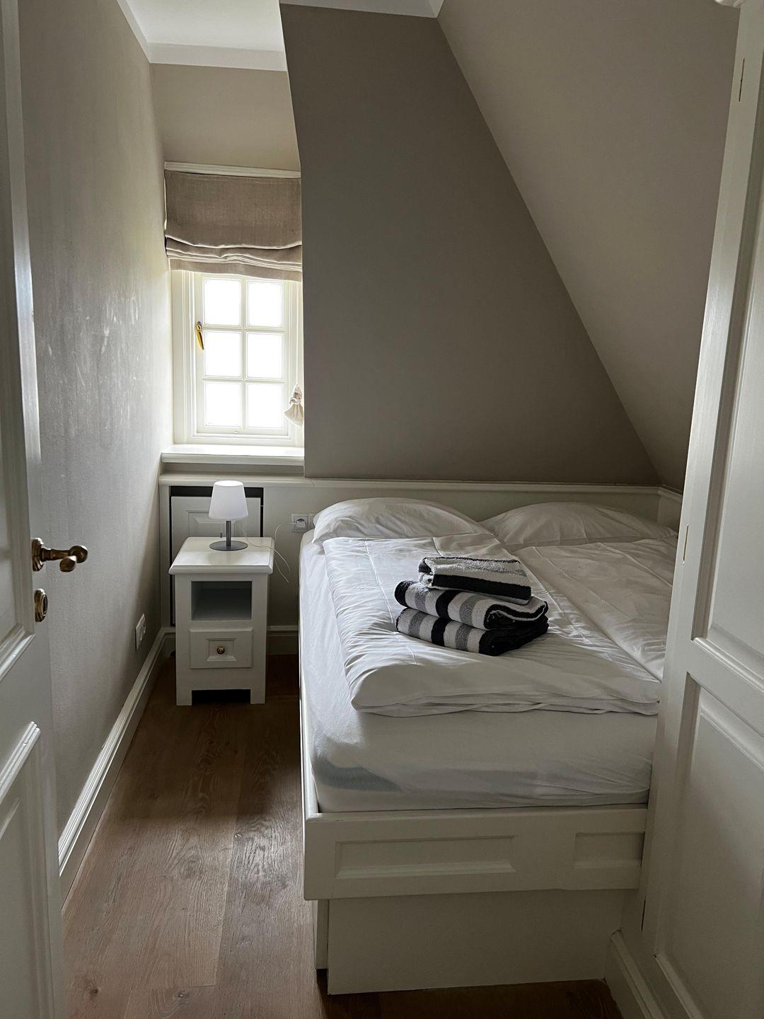Das Schlafzimmer überzeugt mit einem kuscheligen Doppelbett (160 x 200 cm) und einem eingebauten Kleiderschrank, der viel Stauraum bietet und für Ordnung sorgt. Verdunkelungsmöglichkeiten sorgen dafür, dass Sie auch im hellen Nordseelicht angenehm schlafen können.