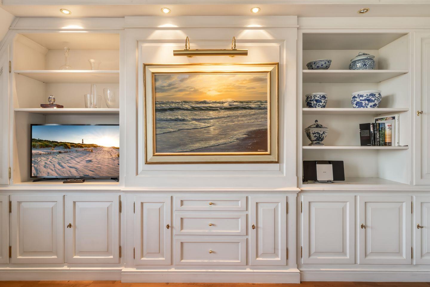 Dieses helle Feriendomizil liegt im ersten Obergeschoss in einer schönen Anlage unter Reet. Die Wohnung zeichnet sich durch einen fantastischen Meer- und Dünenblick in bester Lage von Kampen sowie eine hochwertige Einrichtung mit Tischlereinbauten und Eichenholz-Parkettboden aus. Der Übergang zum Kampener Hauptstrand liegt nur 500 Meter von der Haustür entfernt, die Uwe-Düne ist in 350 Metern zu erreichen.