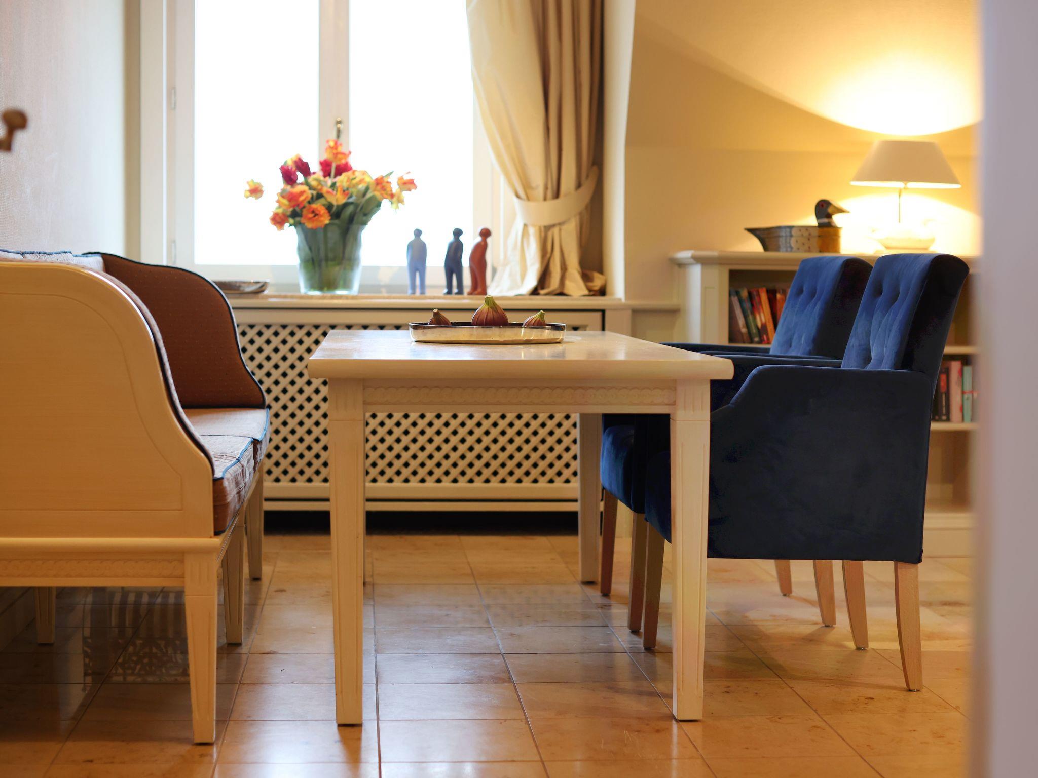 140 Quadratmeter auf einer Ebene für bis zu vier Personen W-LAN voll ausgestattete Küche Weinklimaschrank Arbeitszimmer Waschmaschine Strandkorb Tiefgarage(kostenpflichtig) Lage direkt am Roten Kliff mitten im Naturschutzgebiet Panoramablick eleganter Marmor, lichte, sommerliche Atmosphäre, Meerblick aus allen Fenstern