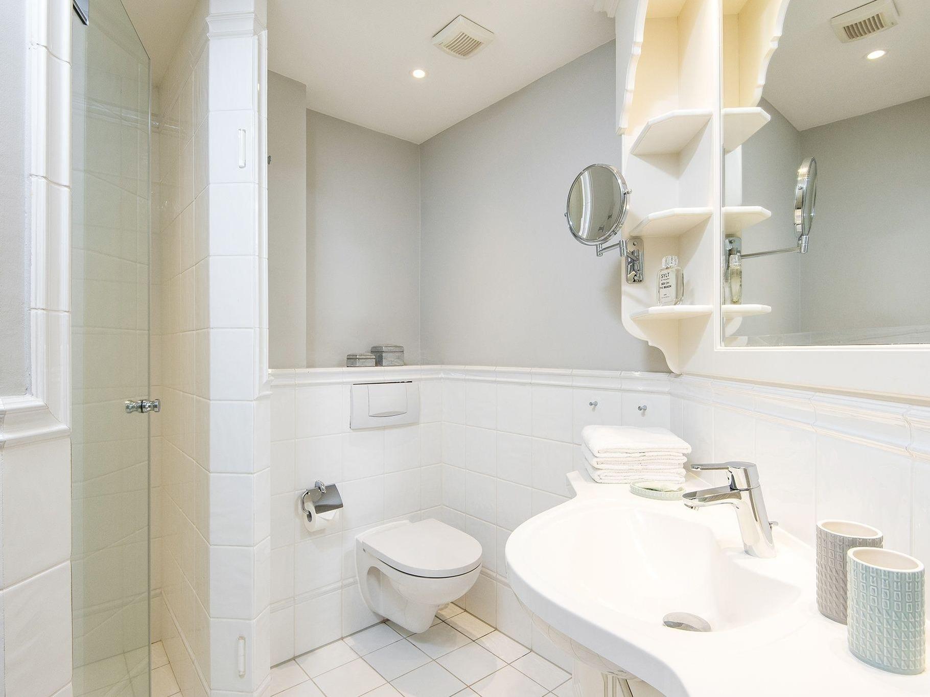 Ein elegant gemütliches Hausteil mit Platz für bis zu Fünf auf drei Etagen. Durch den kleinen Flur erreicht man direkt den stilvoll mit kleinen Farbakzenten eingerichteten Wohn-/Essbereich mit gemütlichen Polstermöbeln, Kamin, großen Fensterfronten nac...