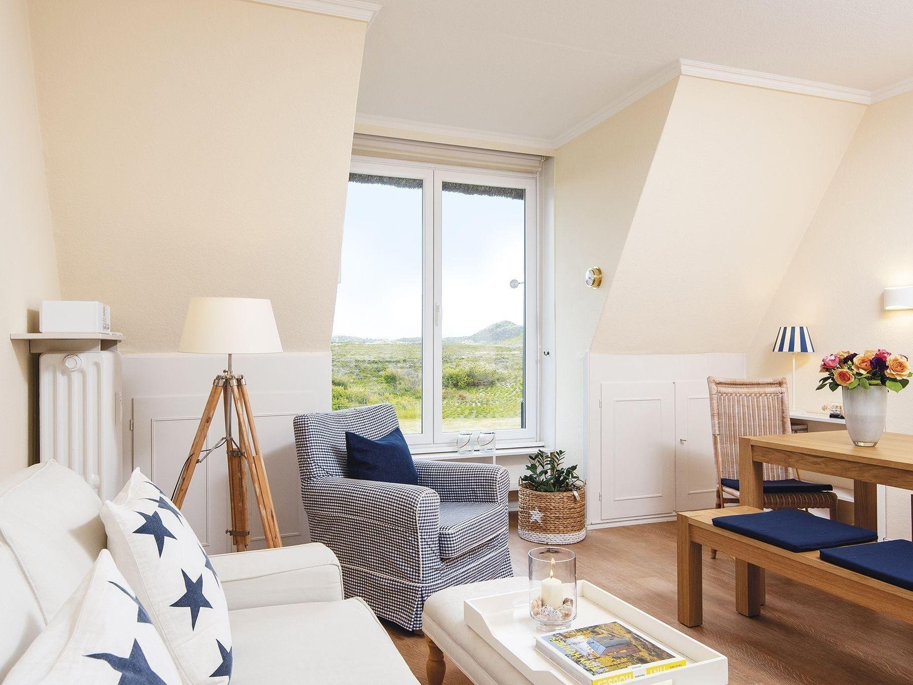 Schöne Ferienwohnung in Kampen mit Blick auf Dünen und Leuchtturm, modern ausgestattet und ideal für einen erholsamen Urlaub.