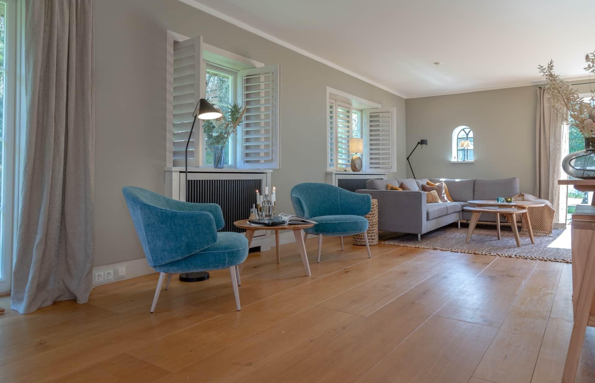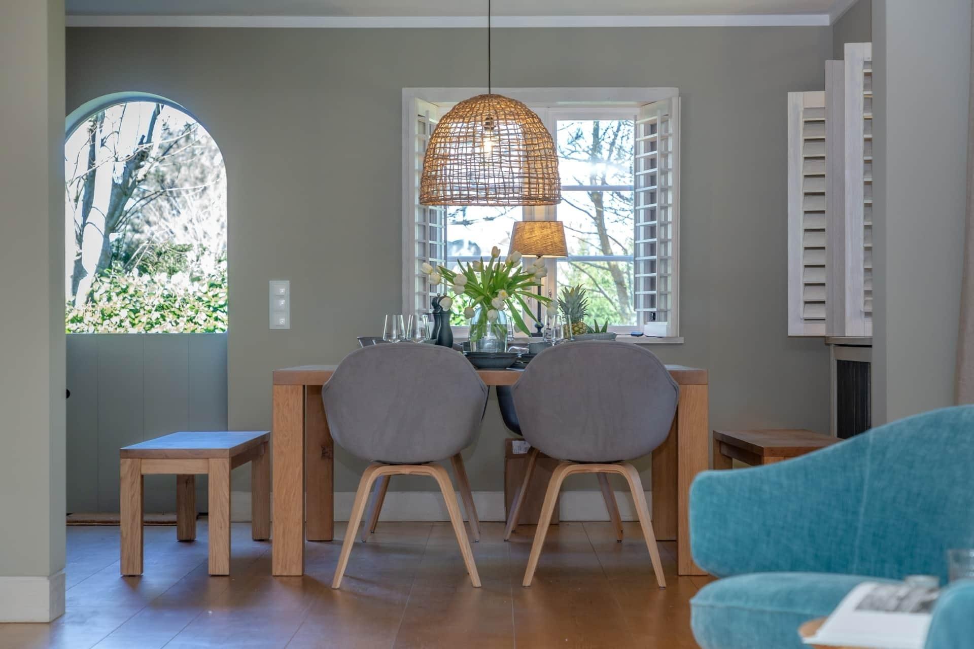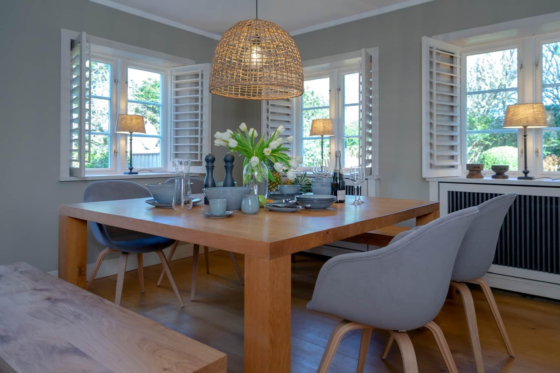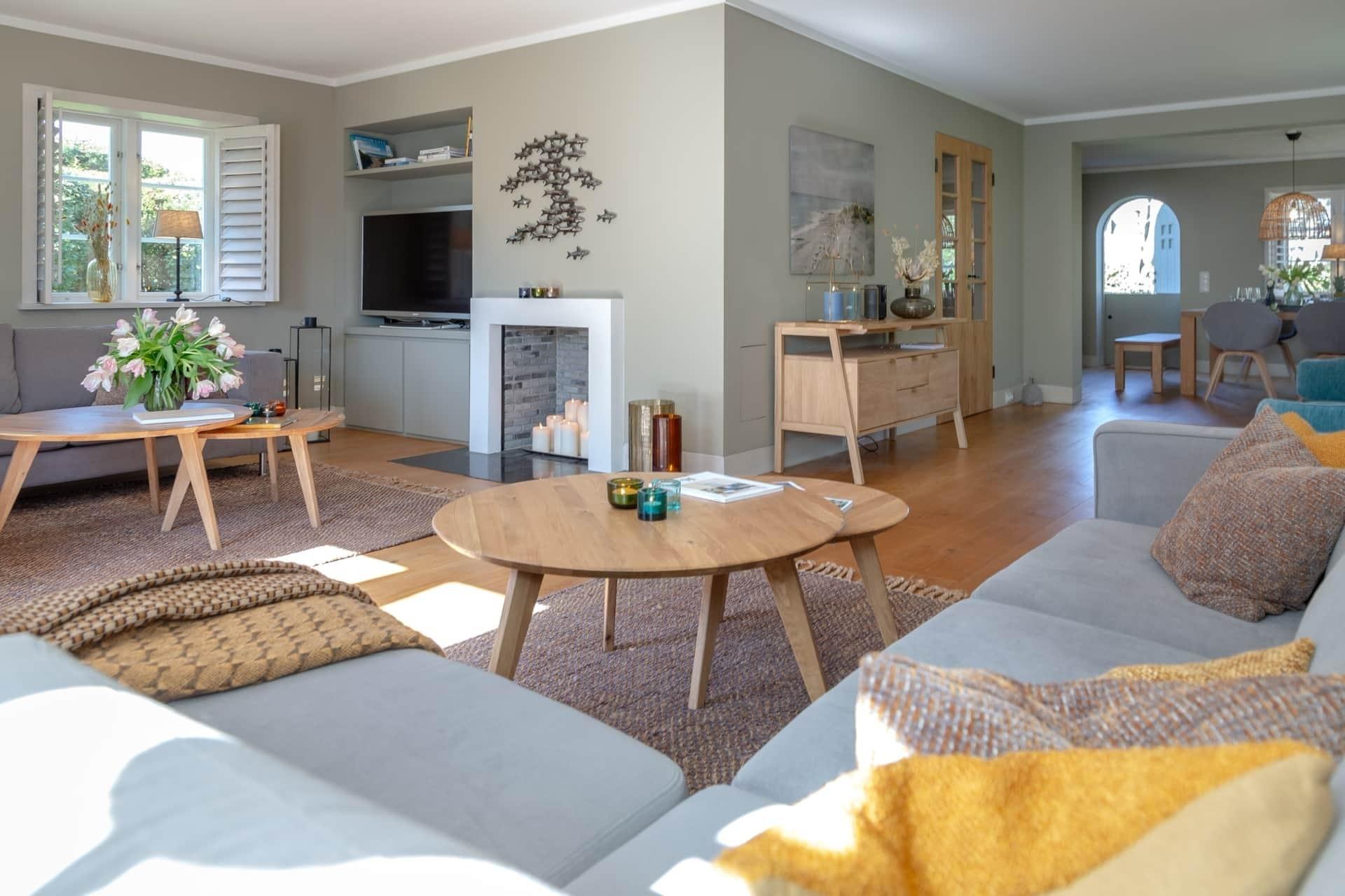 Im Inneren des Hauses erwartet die Gäste eine geschmackvolle Einrichtung mit einer voll ausgestatteten Küche, einem großzügigen Wohnzimmer und Essbereich. Jedes Schlafzimmer ist individuell gestaltet und bietet ausreichend Platz und Privatsphäre. Die Bäder sind mit hochwertigen Armaturen und stilvollen Details ausgestattet.