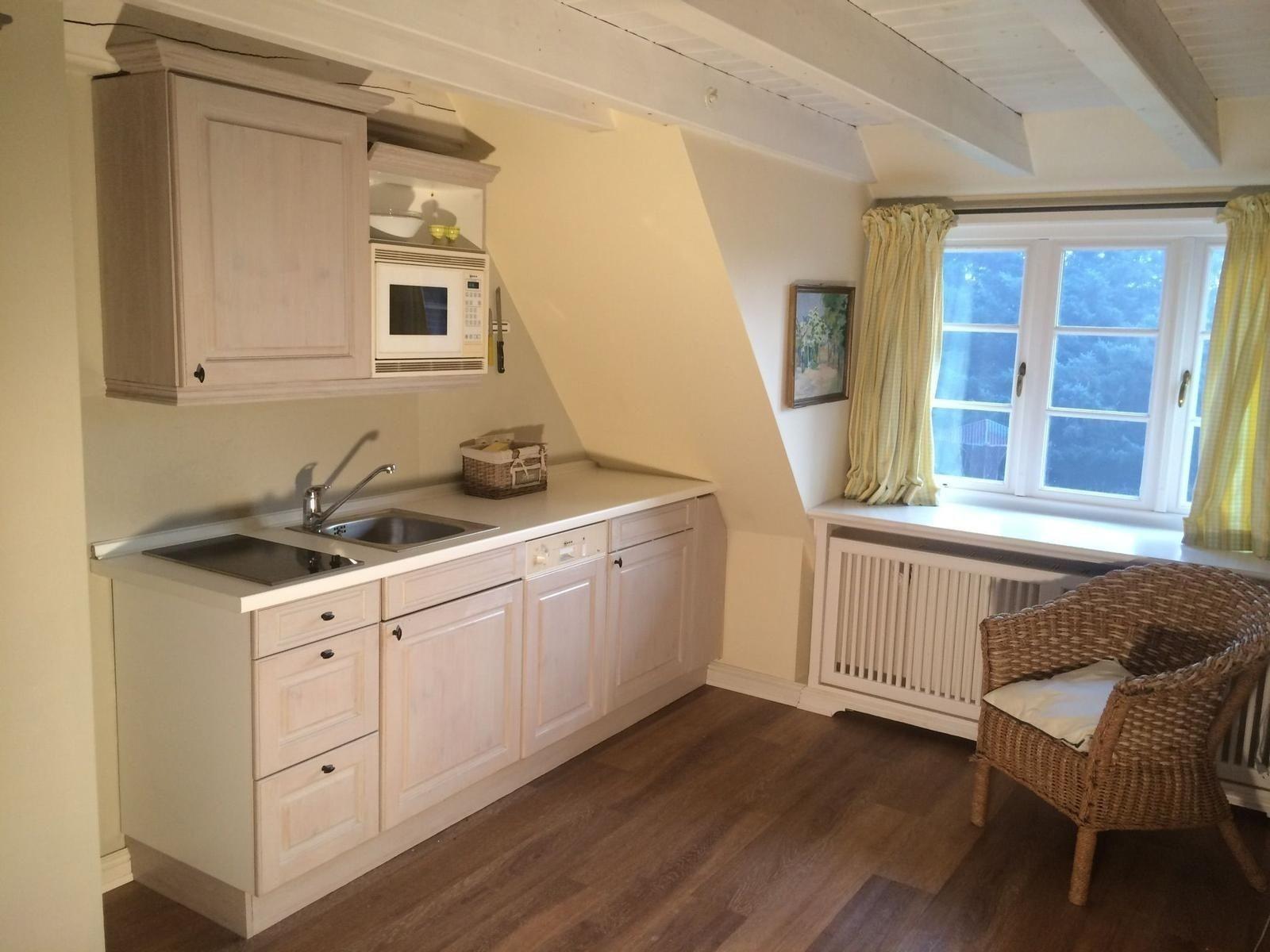 Die Wohnung wird in der Ausstattung gehobenen Ansprüchen gerecht. Im WohnEssbereich prägen helle, zum Teil schwedische Antiquitäten das Ambiente.Küchenzeile mit Geschirrspüler,Mikrowelle etc.Das Appartement verfügt über Fenster nach Ost,Süd und West was dem Appartement ein sehr helles und freundliches Ambiente verleiht.