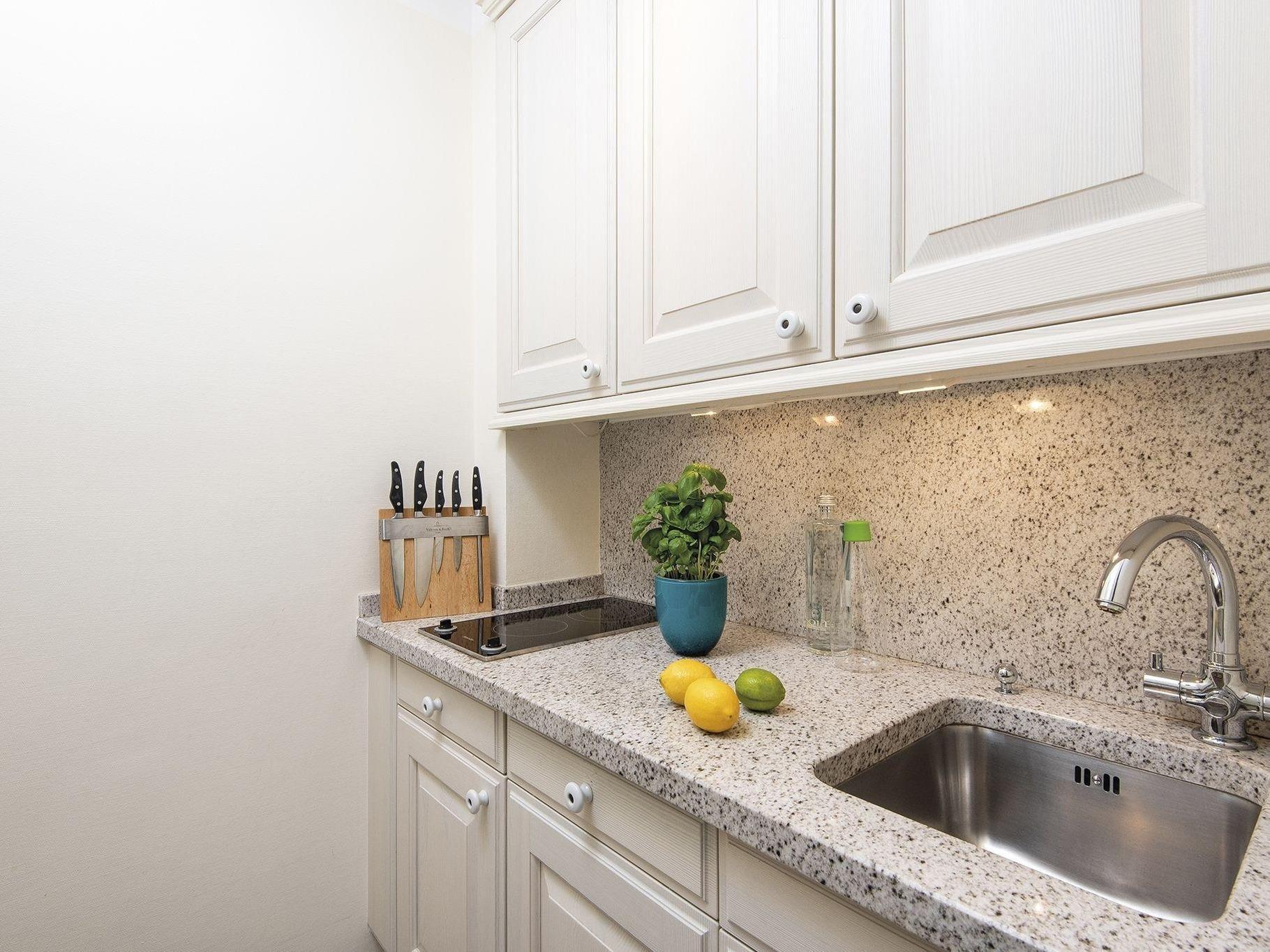Ein Traumblick gleich über beide Meere bis zum Quermarkenfeuer und weiter hoch in den Norden über das Wattenmeer nach List bietet sich aus dem tiefen, von Sitzkissen gesäumten Panoramafenster des Wohnzimmers. Der große Vorzug des Appartementhauses Kampbarg ist seine Lage in der Kurhausstraße, im Herzen des renommierten Dorfes. Die Wohnung Nummer 36 liegt im ersten Stock und ist hochwertig, modern und originell eingerichtet. Neben dem Wohnzimmer befindet sich auf dieser Ebene zudem eine kleine separate Küche und ein Duschwannenbad unter der Schräge. Eine schmale Treppe führt hinauf in das behagliche und hochwertig eingerichtete Doppelschlafzimmer und hat einen traumhaften Blick durch das Dachfenster in den Sternenhimmel.