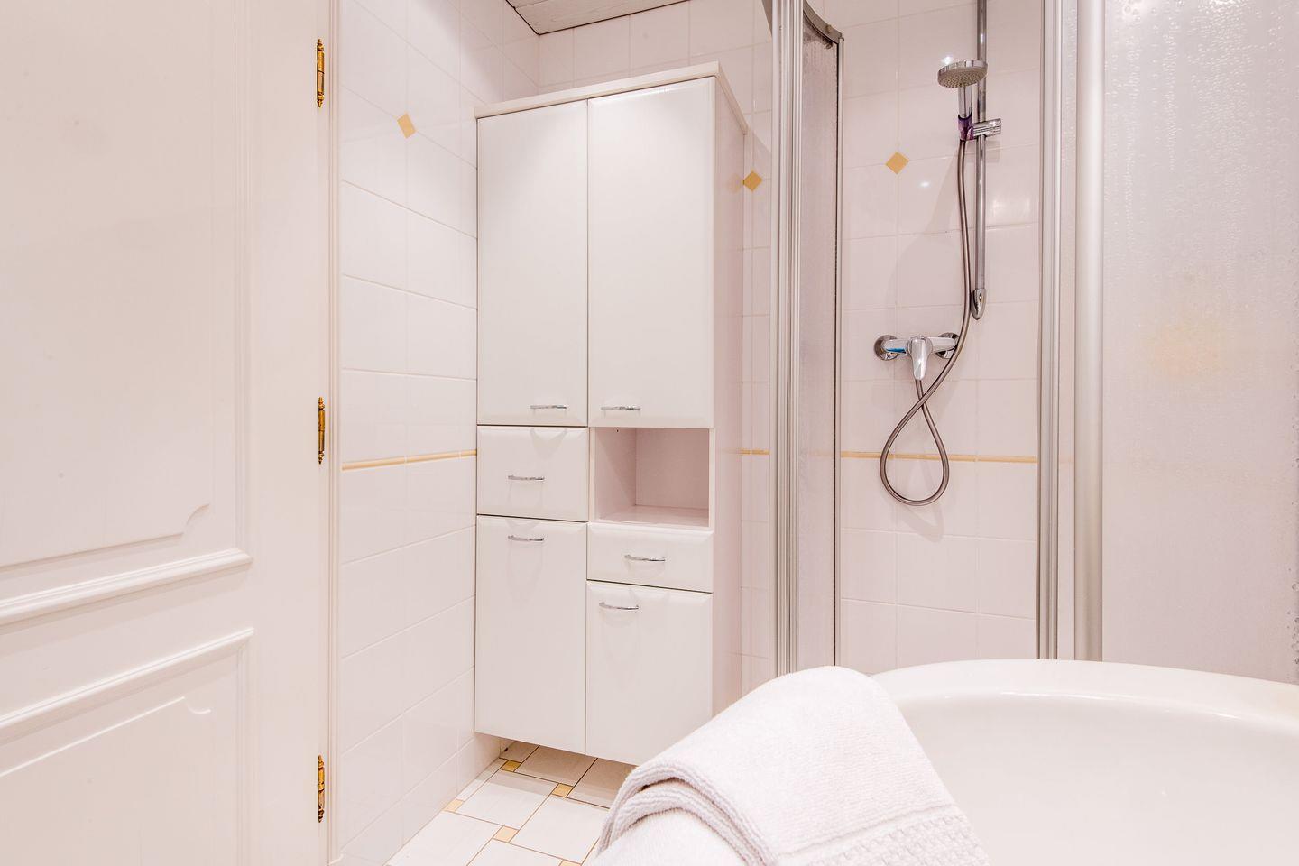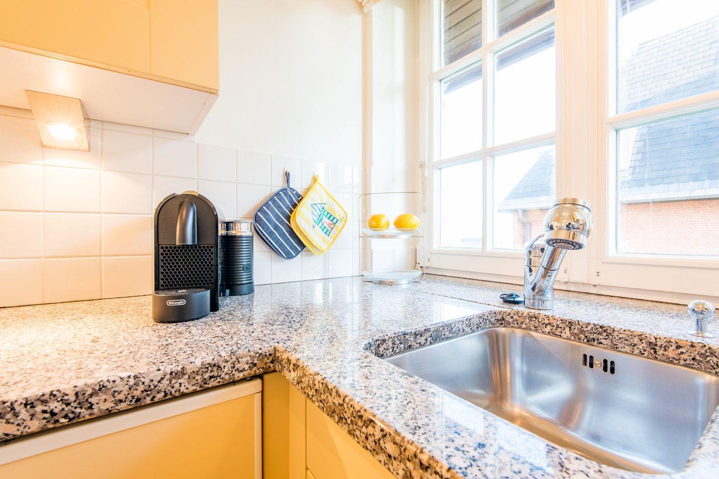 In der separaten, voll ausgestatteten Küche finden Sie alles, was Sie zur Zubereitung von köstlichen Mahlzeiten benötigen. Sie ist mit einem Cerankochfeld, einer Spülmaschine, einer Mikrowelle und einer Nespresso-Kaffeemaschine ausgestattet und bietet jeden modernen Komfort.