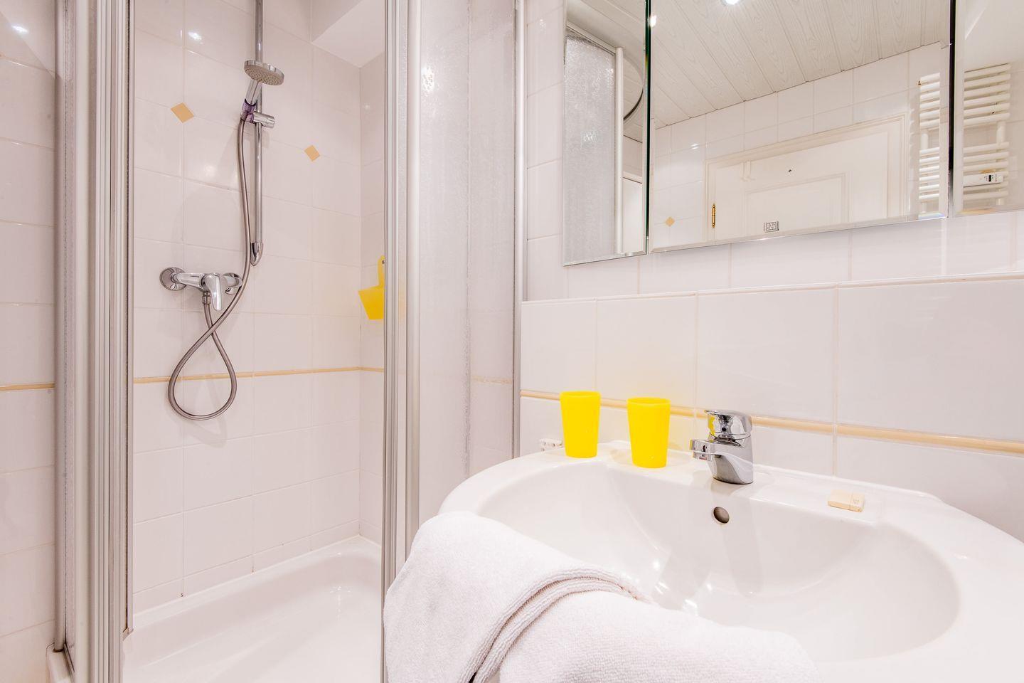 Das moderne Duschbad bietet eine ebenerdige Dusche, ein WC und einen Fön und ist perfekt für Ihre tägliche Erfrischung.