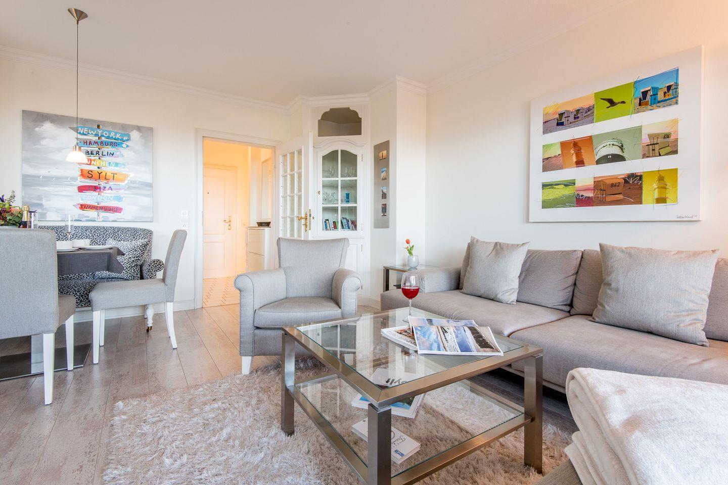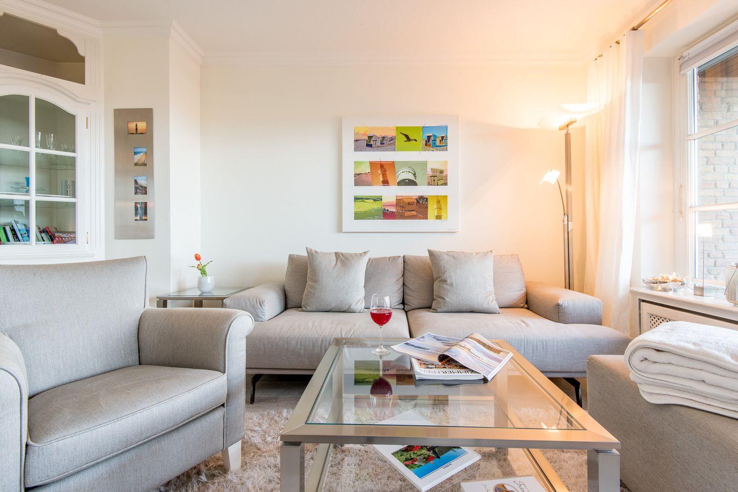 Gemütliche 2-Zimmer-Ferienwohnung in Kampen mit Meerblick, Terrasse und Strandkorb für entspannte Stunden.
