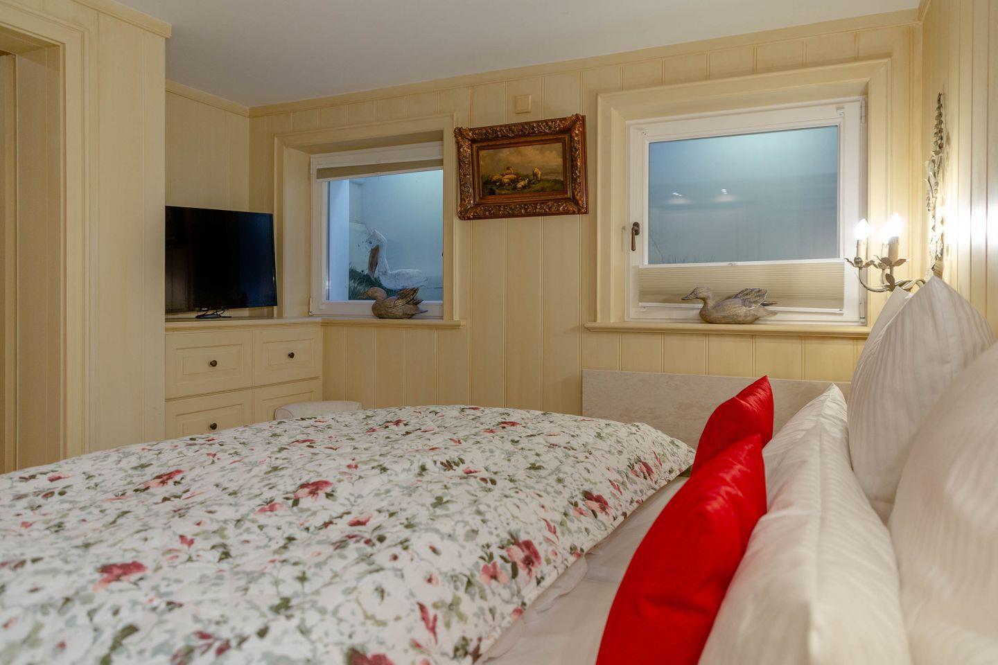 Ein luxuriöses Versteck in direkter Wattlage auf einer sanft abfallenden Düne, die sich dem Schilfgürtel am Wattenmeer zuneigt, weit weg von allem Alltäglichen, aber doch ganz nah am Puls von Kampen. Das Schlafzimmer bietet Ihnen einen direkten Blick in die Dünen. Das Schlafzimmer, ebenso wie ein Gästezimmer, sind mit französischen Polsterbetten und mit TV ausgestattet. Zwei Duschbäder sind ebenfalls vorhanden. Ein Hauswirtschaftsraum mit Waschmaschine und Trockner sowie WLAN stehen Ihnen ebenfalls zur Verfügung.