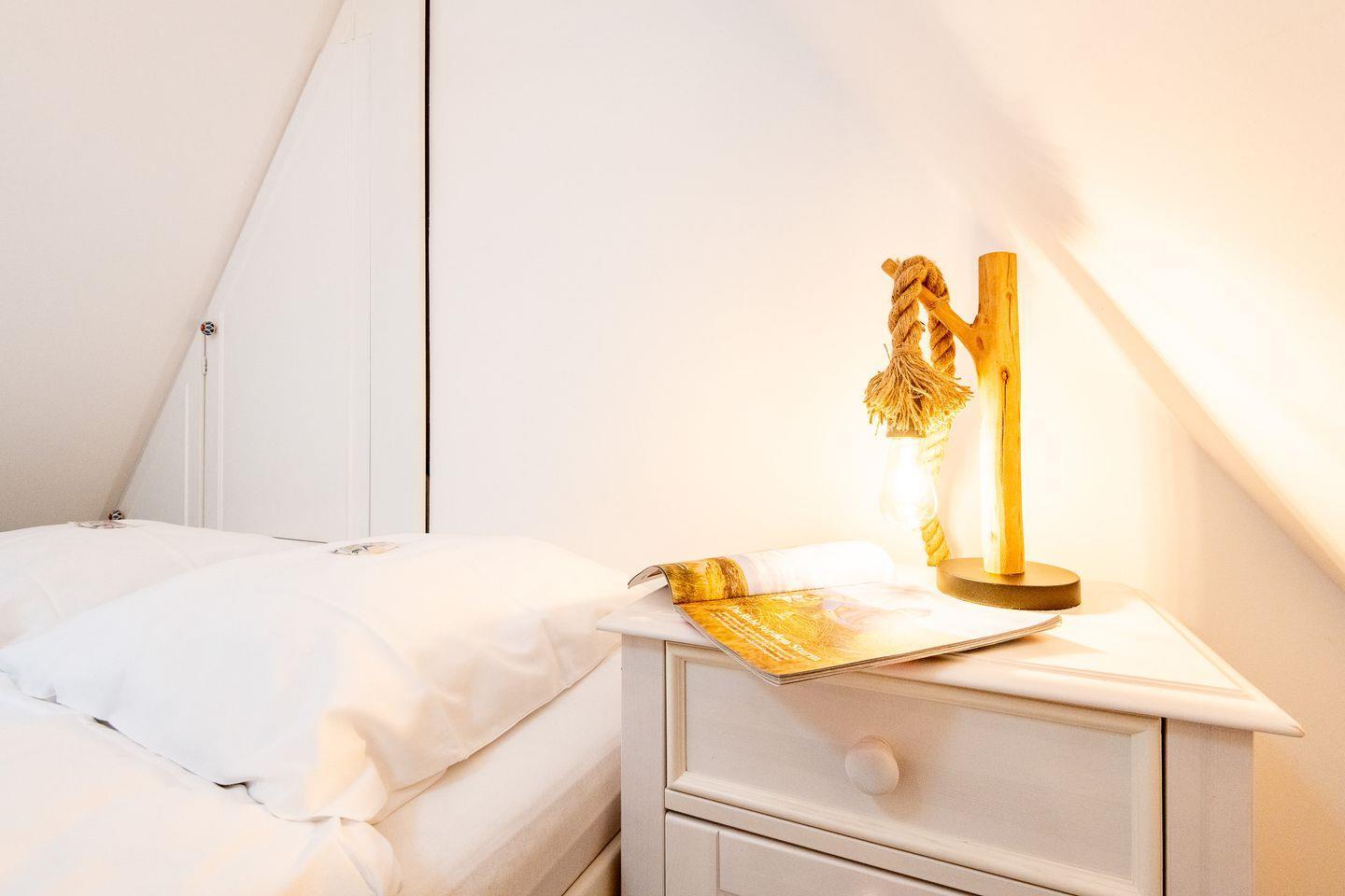 Das helle Schlafzimmer ist mit einem bequemen Doppelbett (2 x 90x200 cm) und einem Kleiderschrank eingerichtet, der ausreichend Stauraum bietet.