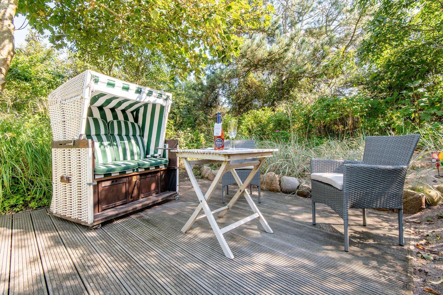 Gemütliche 2-Zimmer-Ferienwohnung unter Reet in Kampen mit Elektro-Kamin und Gemeinschaftsgarten mit Strandkorb.