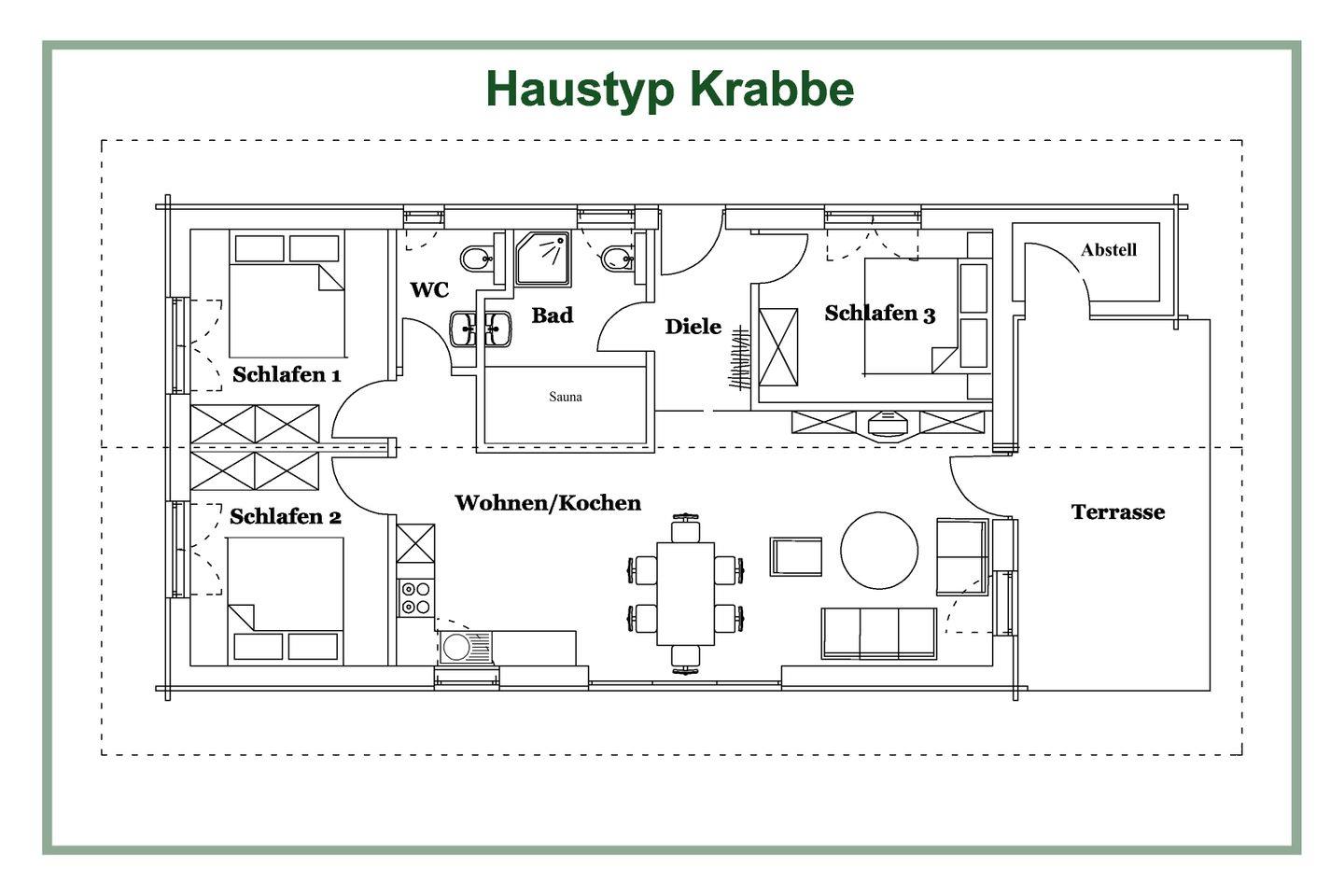 Das freistehende Ferienhaus bietet auf 81 m² Platz für bis zu 6 Personen und ist ideal für Familien und Gruppen. Es verfügt über insgesamt 4 Zimmer, darunter 3 behagliche Schlafzimmer mit bequemen Boxspring-Doppelbetten (180x200) und Kleiderschränken.