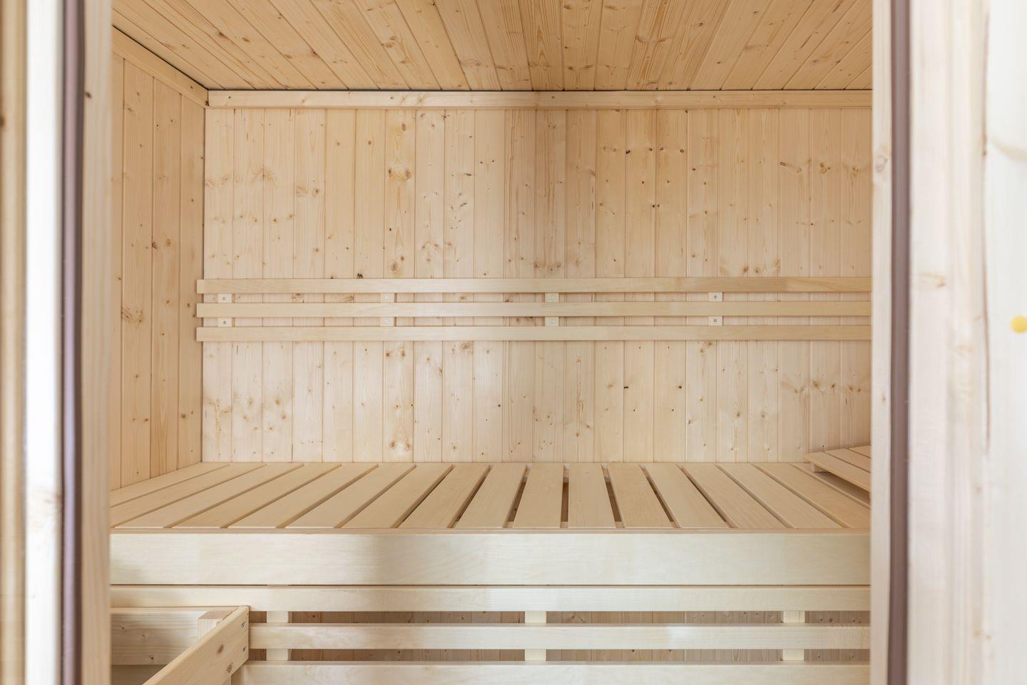 Ein modernes Badezimmer mit bodengleicher Dusche, WC und Sauna sowie ein zusätzliches Gäste-WC sorgen für besonderen Komfort.