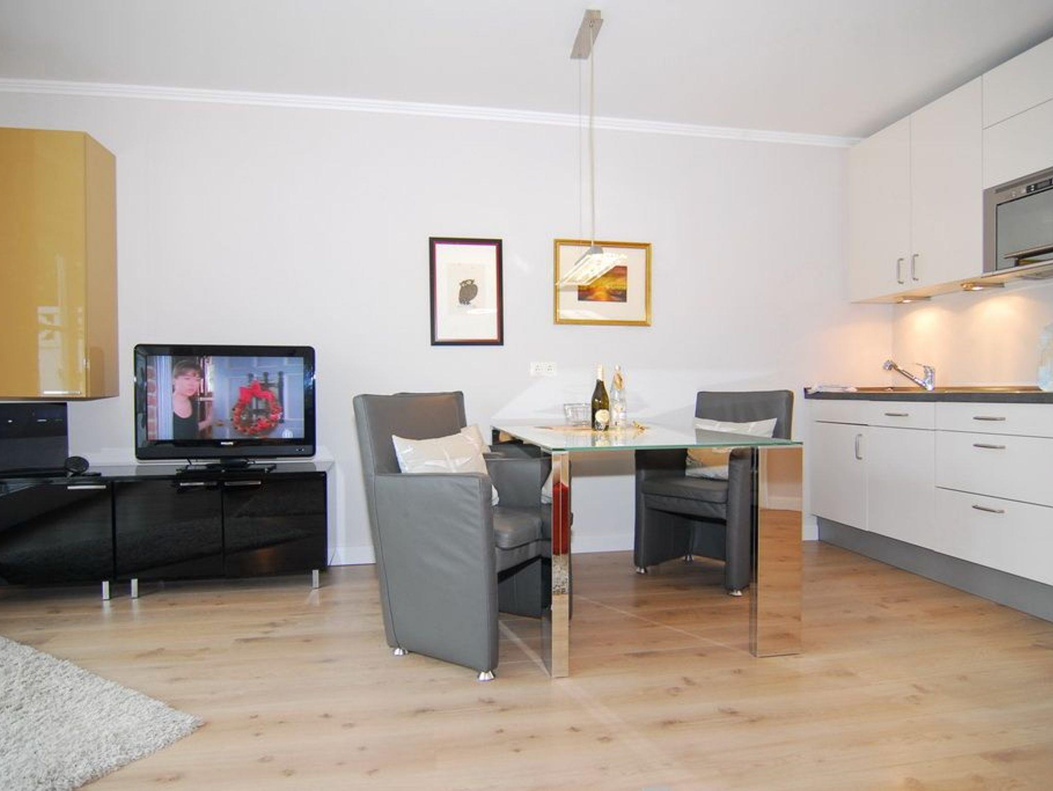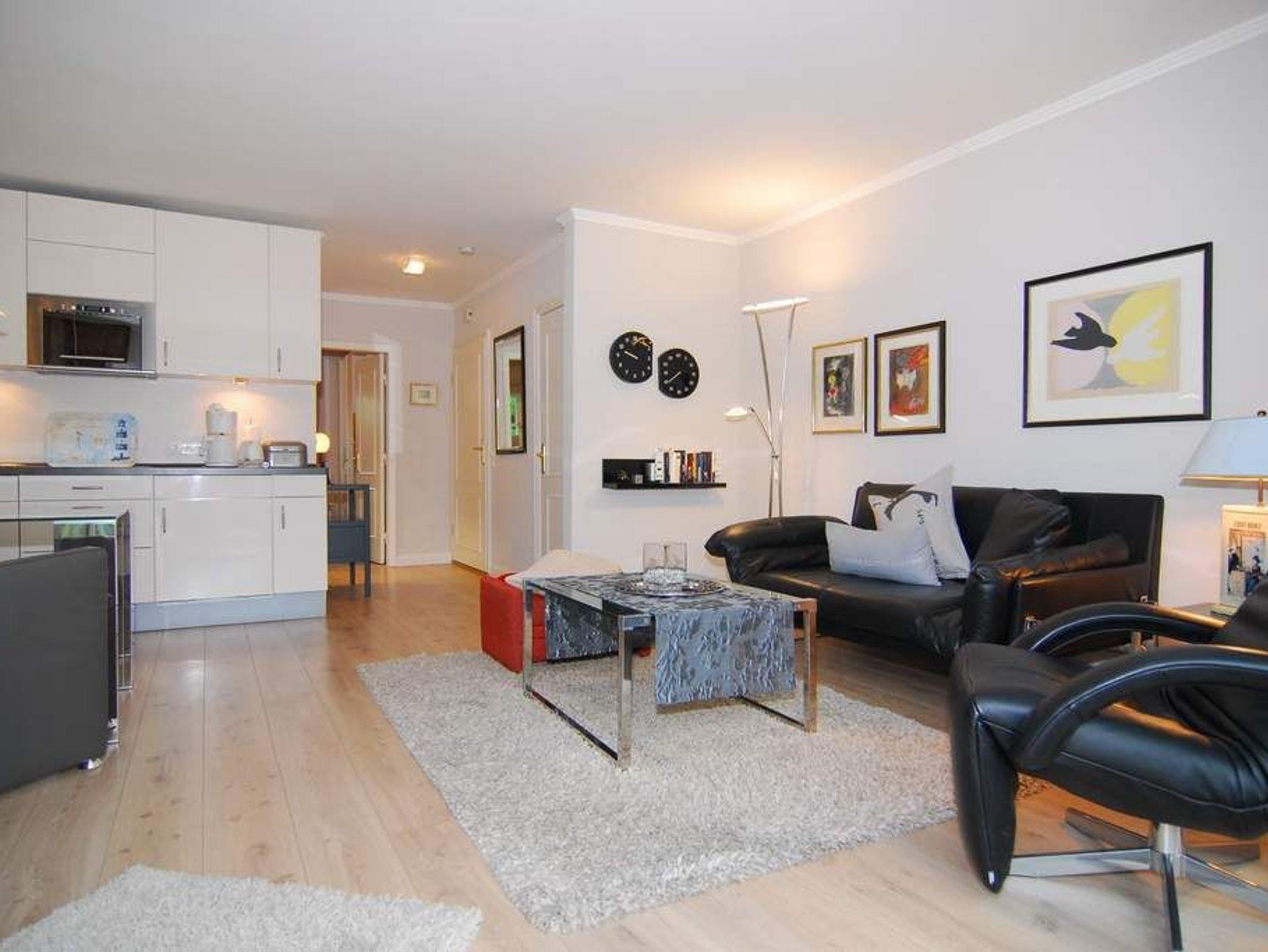In der hundefreundlichen Wohnung stehen Ihnen neben einem geräumigen Wohnzimmer mit Sitz- und Essgruppe eine offene Küchenzeile mit Geschirrspüler und Mikrowelle zur Verfügung. Vom Wohnraum aus gelangen Sie auf die möblierte Westterrasse mit Strandkorb. Das separate Schlafzimmer bietet ein Doppelbett, Einbauschrank und TV. Ein geräumiges Duschbad / WC und eine praktische Abseite im Flur für Ihr Gepäck runden das Angebot ab.