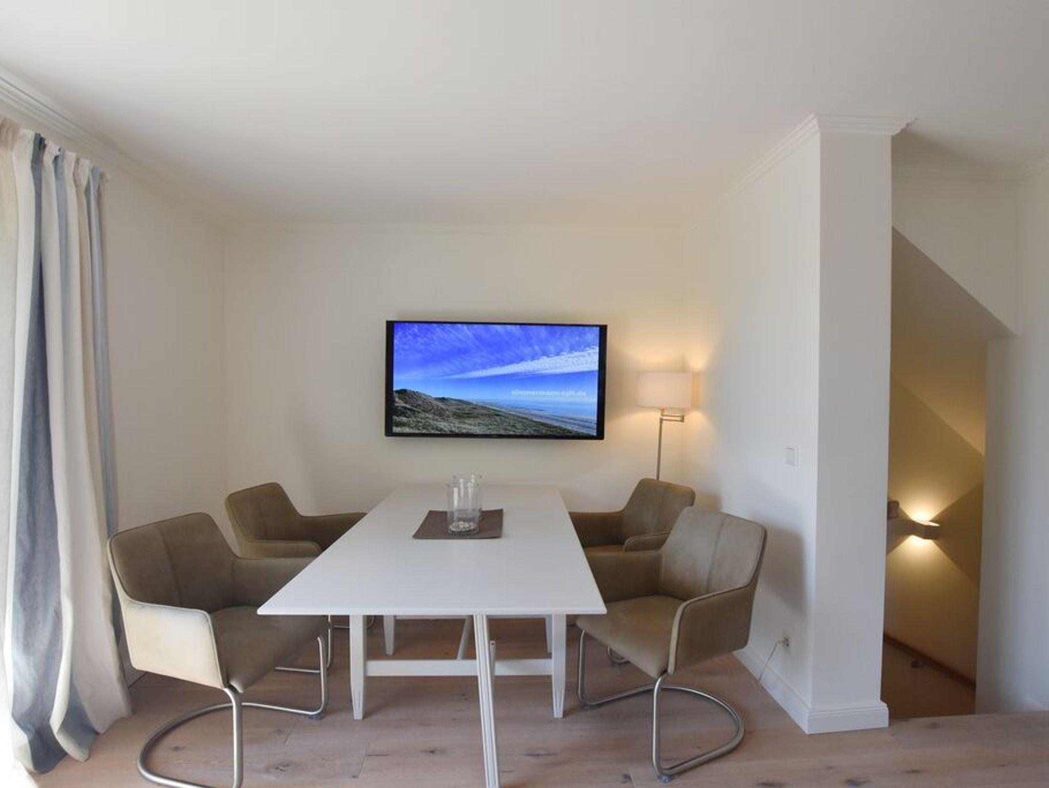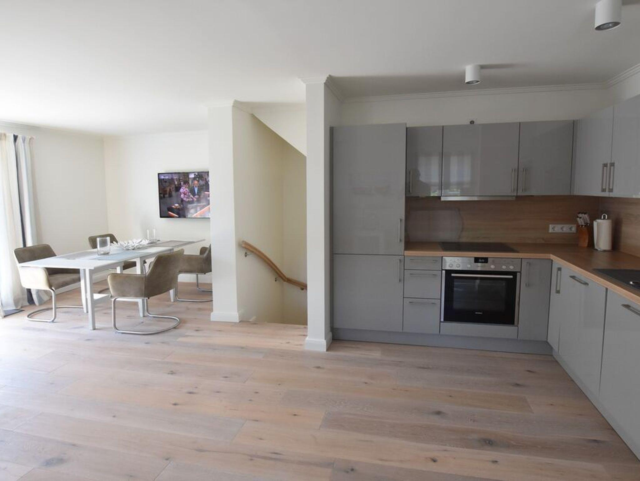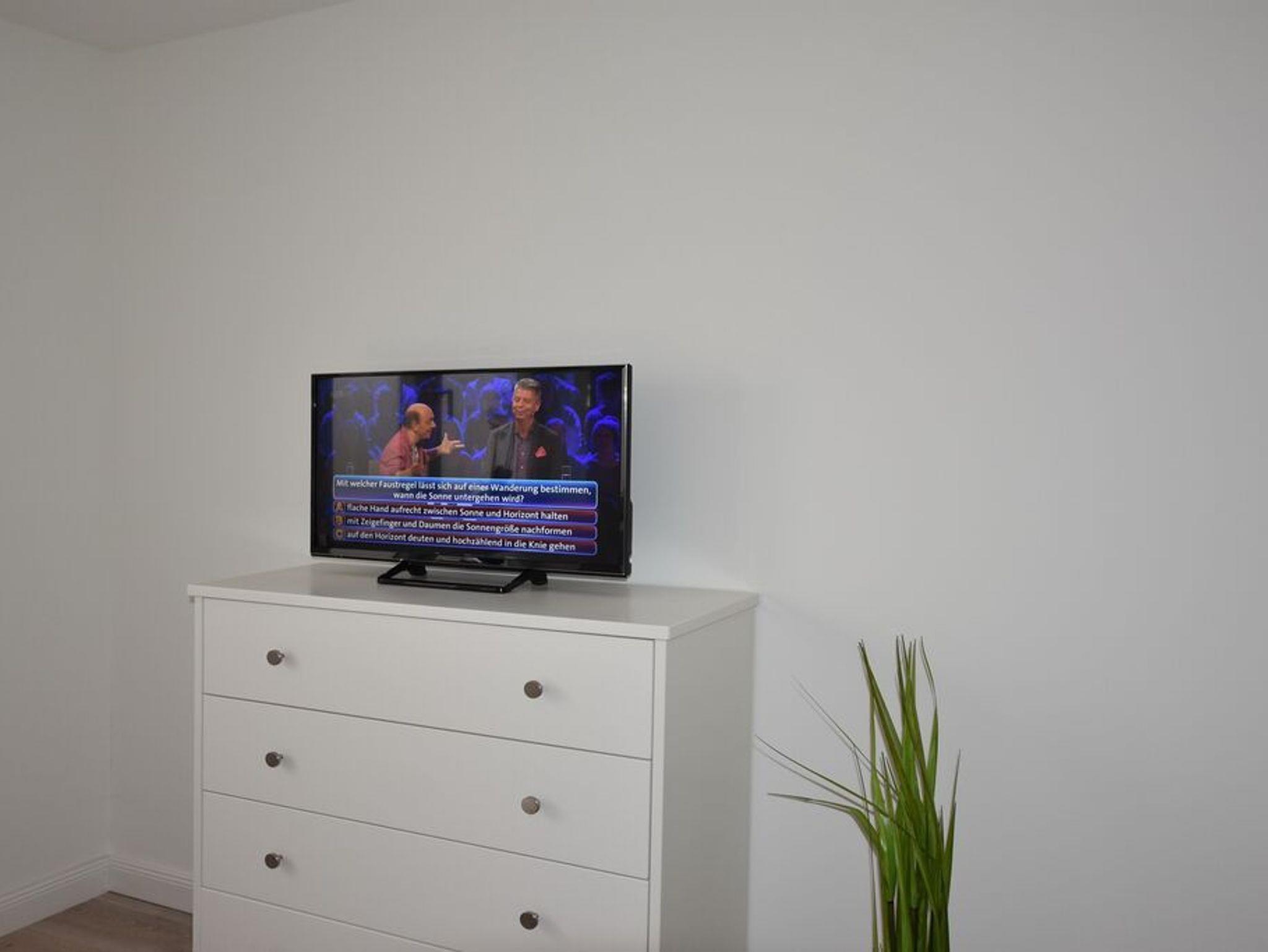 Die Ferienwohnung ist mit einem WLAN-Anschluss ausgestattet, so dass Sie jederzeit online sein können. Dank des Smart-TVs können Sie auch im Urlaub Ihre Lieblingsserien und Filme genießen. Die offene Wohnküche lädt zum gemeinsamen Kochen und Essen ein. Eine Kaffeemaschine (Filter) ist ebenfalls vorhanden.