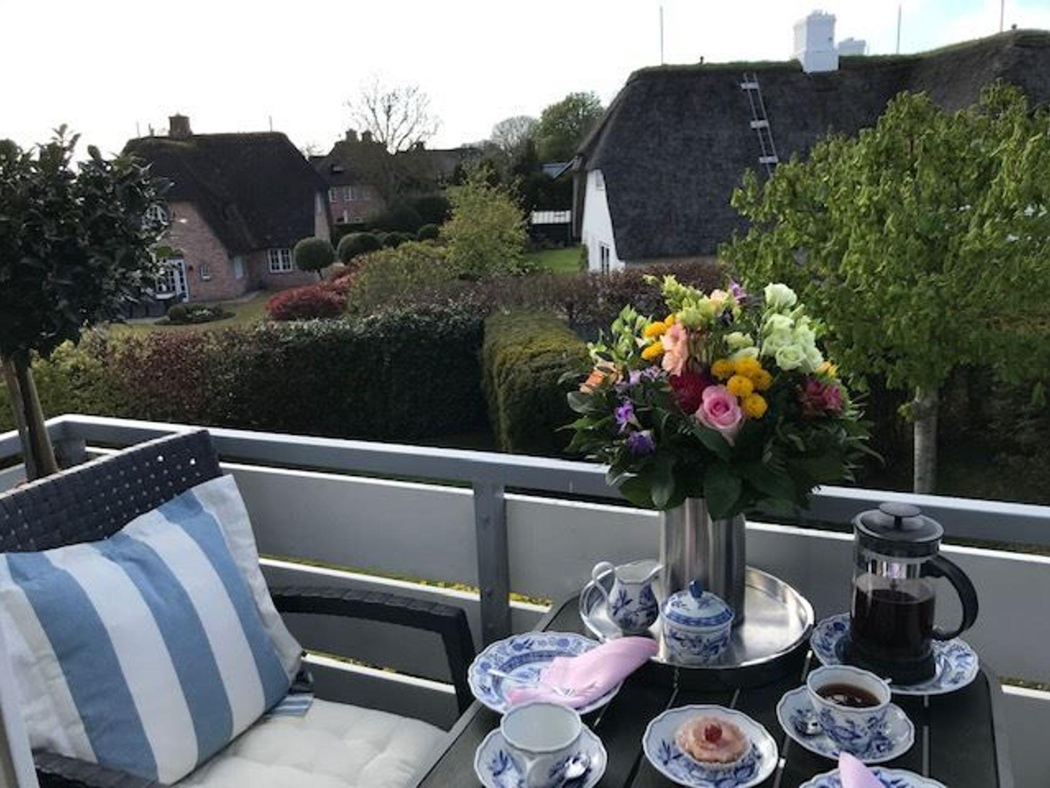Ruhige Ferienwohnung im historischen Keitum mit Balkon, Schwimmbad, Sauna und WLAN, nur wenige Gehminuten vom Wattenmeer entfernt.