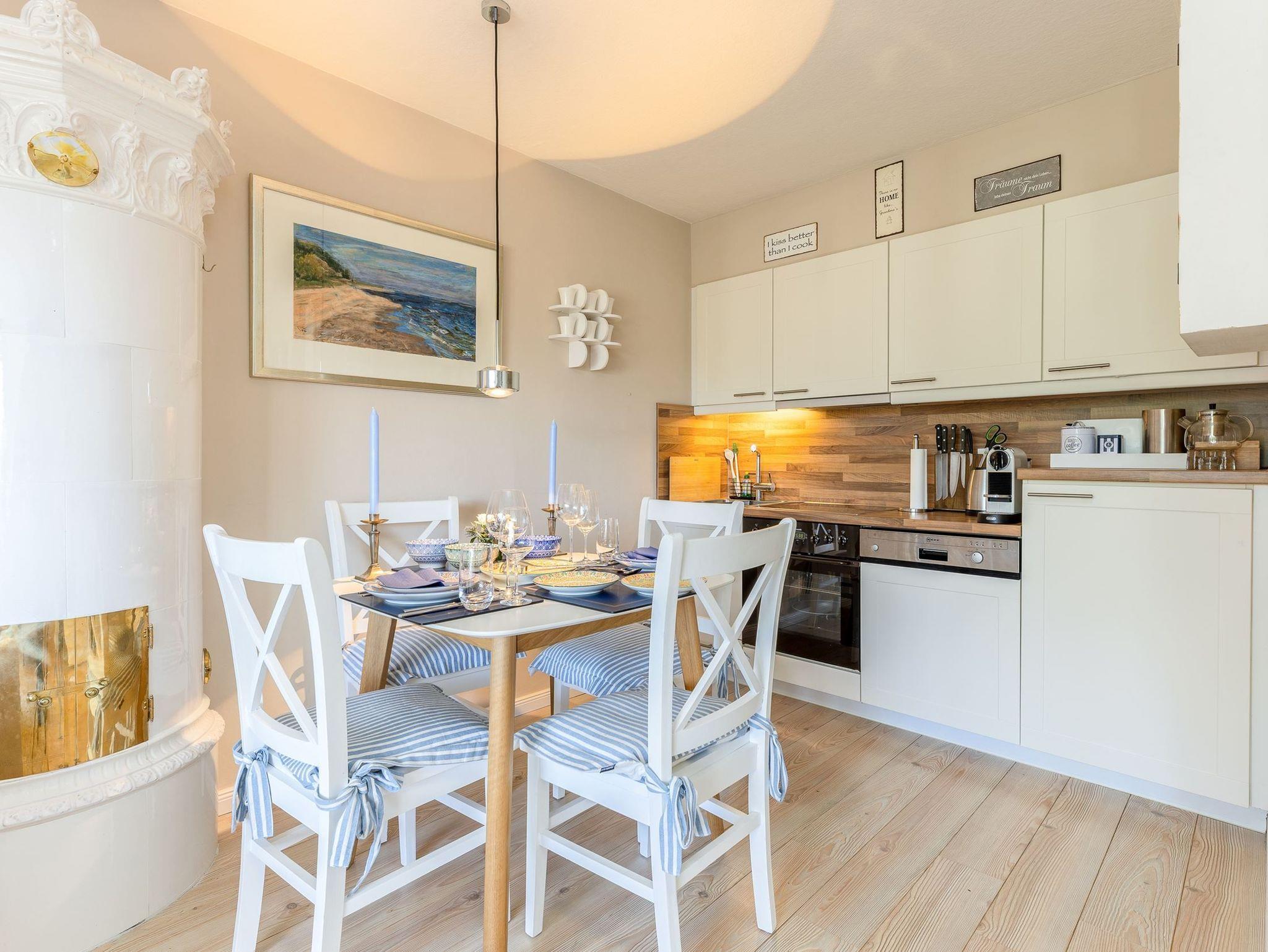 Die Wohnung wurde in sehr harmonischer Farbgebung mit vielen liebevollen Dekorationen renoviert und neu möbliert. In dieser Wohlfühloase werden Sie sich mit Sicherheit wunderbar erholen. Die hochwertige Einrichtung und der gemütliche Balkon sorgen für unvergessliche Ferien. Die Küche verfügt ebenfalls über Alles, was zu einem gemeinsamen Kochen einlädt,- ein Cerankochfeld, einen Backofen, einen Geschirrspüler, Filter-Kaffeemaschine, Toaster und einen Wasserkocher.Für einen guten Start in den Tag befindet sich in der Küche zusätzlich noch eine Nespresso- Kapselmaschine. Ein besonderes Highlight dieser wunderschönen Wohnung ist der elektrische Kachelofen. Gemütliche Kuschelabende sind hier garantiert Für die gute Stimmung steht Ihnen außerdem auch eine JBL-Anlage zur Verfügung.