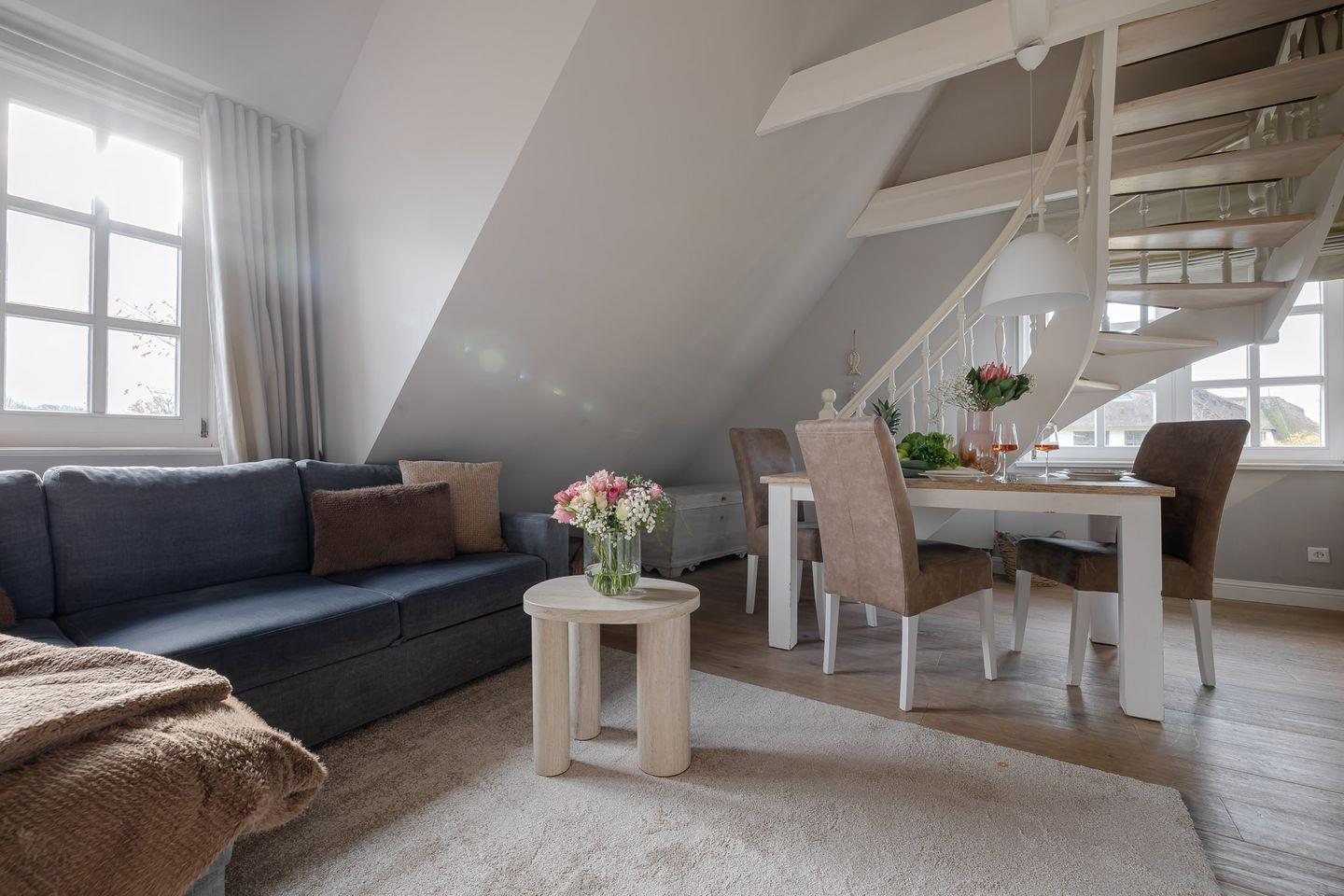Die Wohnung „Leo“ ist ein Nichtraucher-Domizil – ideal für eine entspannte Auszeit zu zweit oder mit Kind im wunderschönen Keitum.
