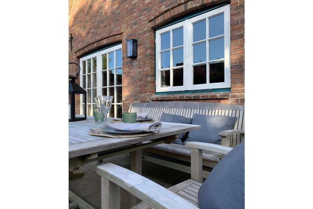 Exklusives Reetdach-Hausteil mit Sauna und Garten in Keitum, ideal für erholsame Tage auf Sylt.