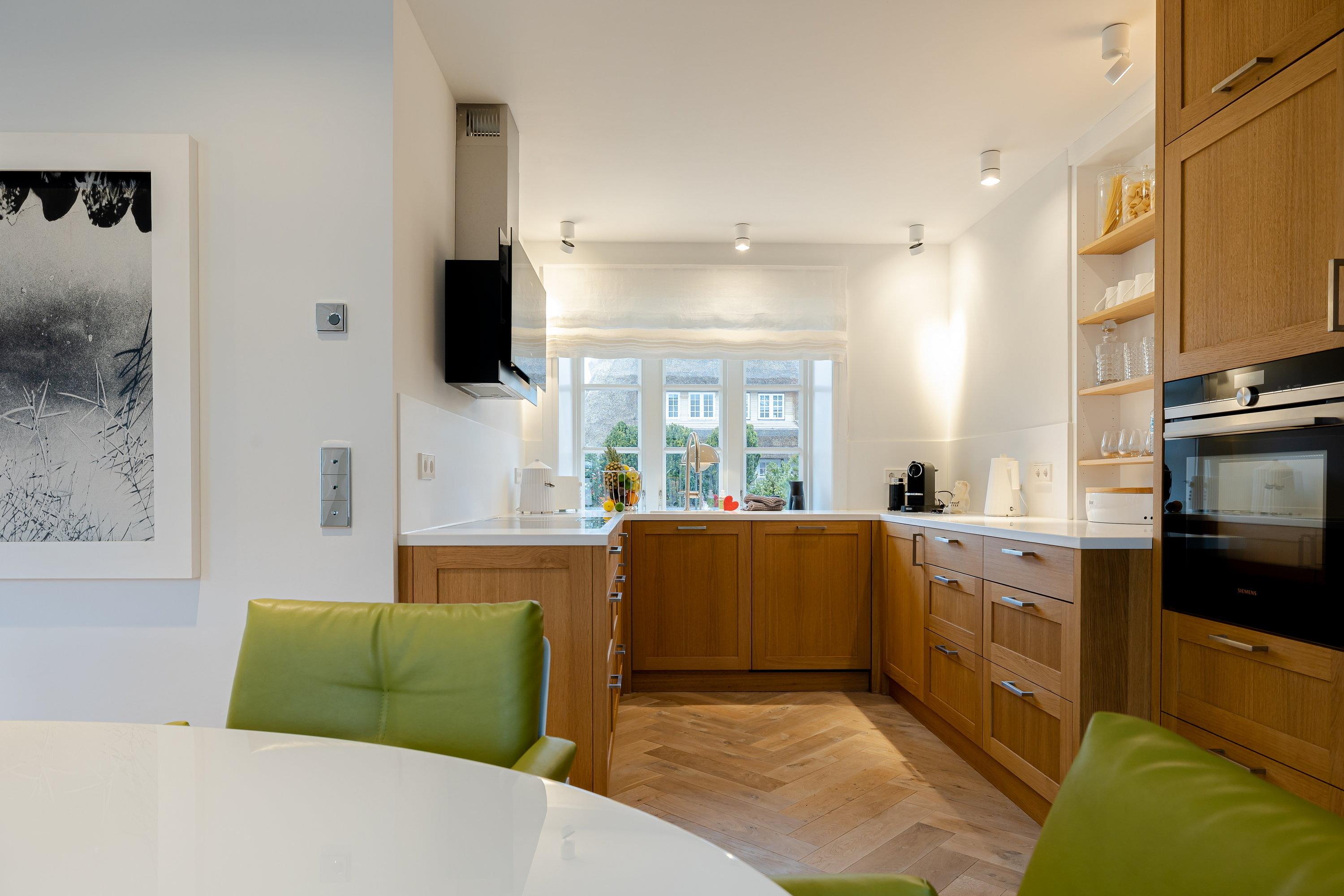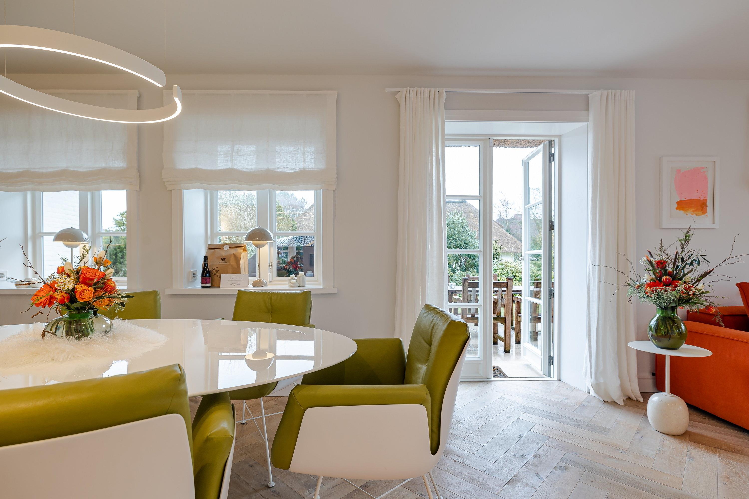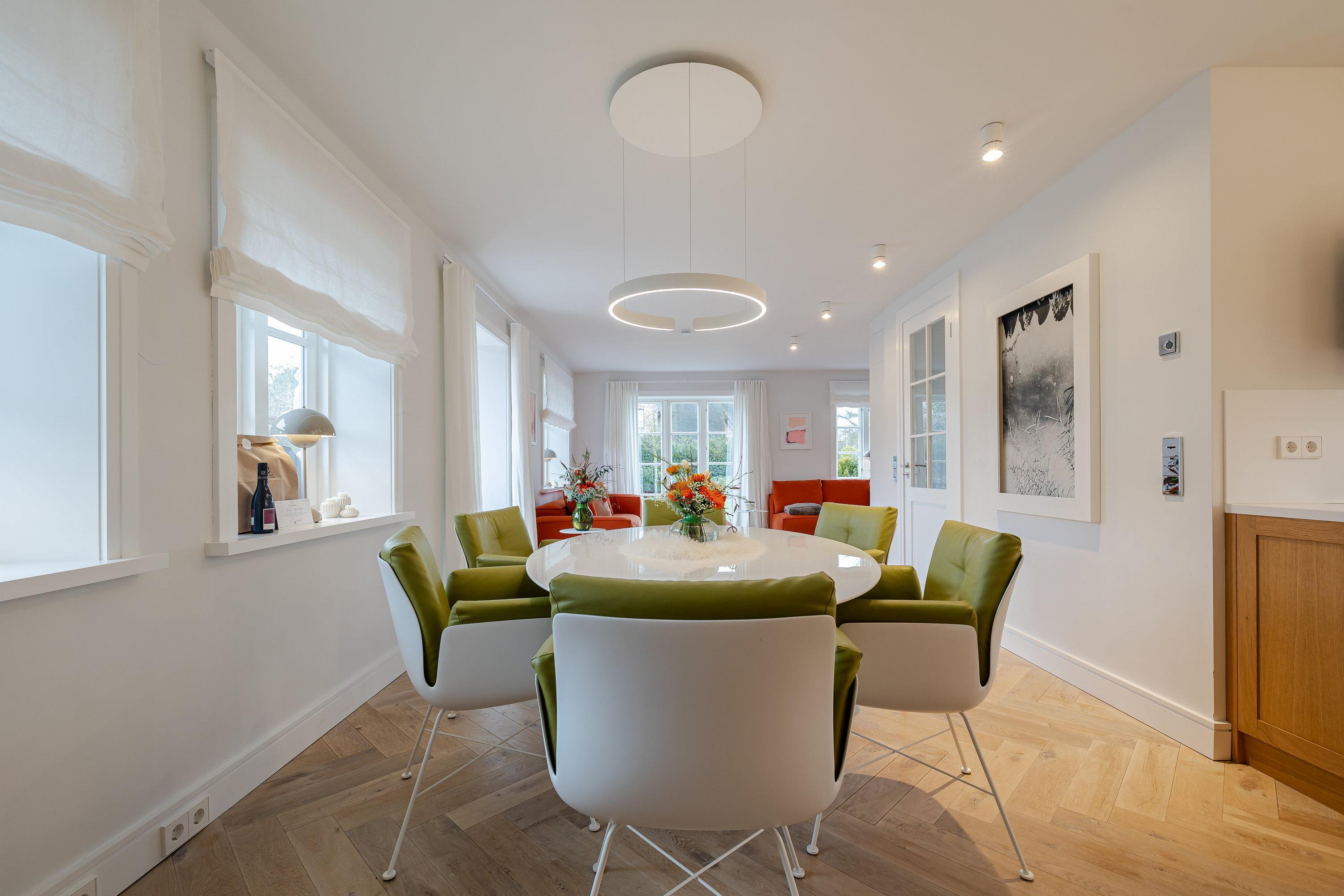 Das im Jahr 2019 gebaute “Haus Leafke” bietet Platz für bis zu 6 Personen. Leafke ist Friesisch und heißt Liebling oder Schatz. Die Zuneigung zu dem Haus finden sie auf allen drei Etagen wieder. Dank liebevoll ausgewählter Einrichtung, aufeinander abgestimmter Möbel und dem einzigartigen Flair von Sylt verspüren Sie sofort das Gefühl von Urlaub. Die Liebe zum Detail wird vor allem durch die wunderbar abgestimmten Farben, tollen Türgriffe und die wundervollen Bilder deutlich. Aber auch die hochwertigen und schönen Möbel von Marken wie Knoll, Occhio und Schramm, die hellen Räume und das gemütliche Fischgrätenparkett mit Fußbodenheizung erzeugen ein Ambiente, in dem man sich nur wohlfühlen kann.