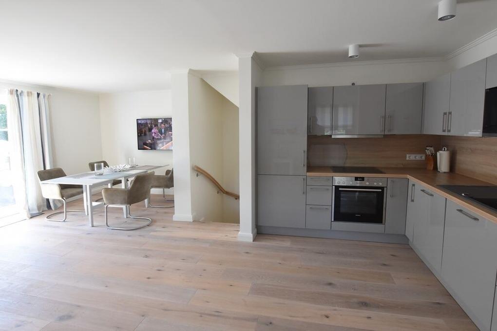 Die Ferienwohnung ist mit einem WLAN-Anschluss ausgestattet, so dass Sie jederzeit online sein können. Dank des Smart-TVs können Sie auch im Urlaub Ihre Lieblingsserien und Filme genießen. Die offene Wohnküche lädt zum gemeinsamen Kochen und Essen ein. Eine Kaffeemaschine (Filter) ist ebenfalls vorhanden.
