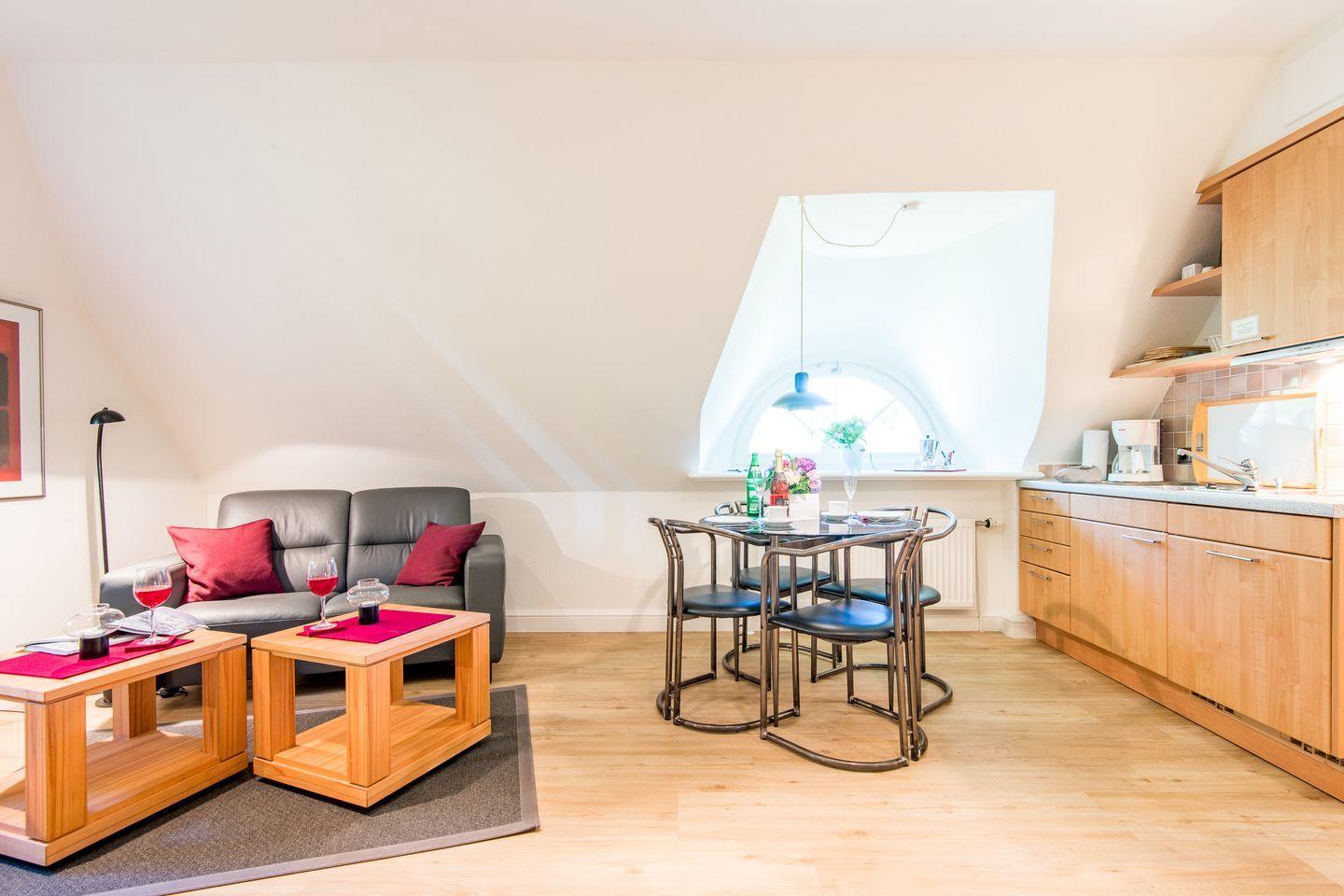 2-Zimmer-Ferienwohnung unter Reet auf 1 Ebene (OG) in Keitum mit ca. 36 qm für bis zu 2 Personen.