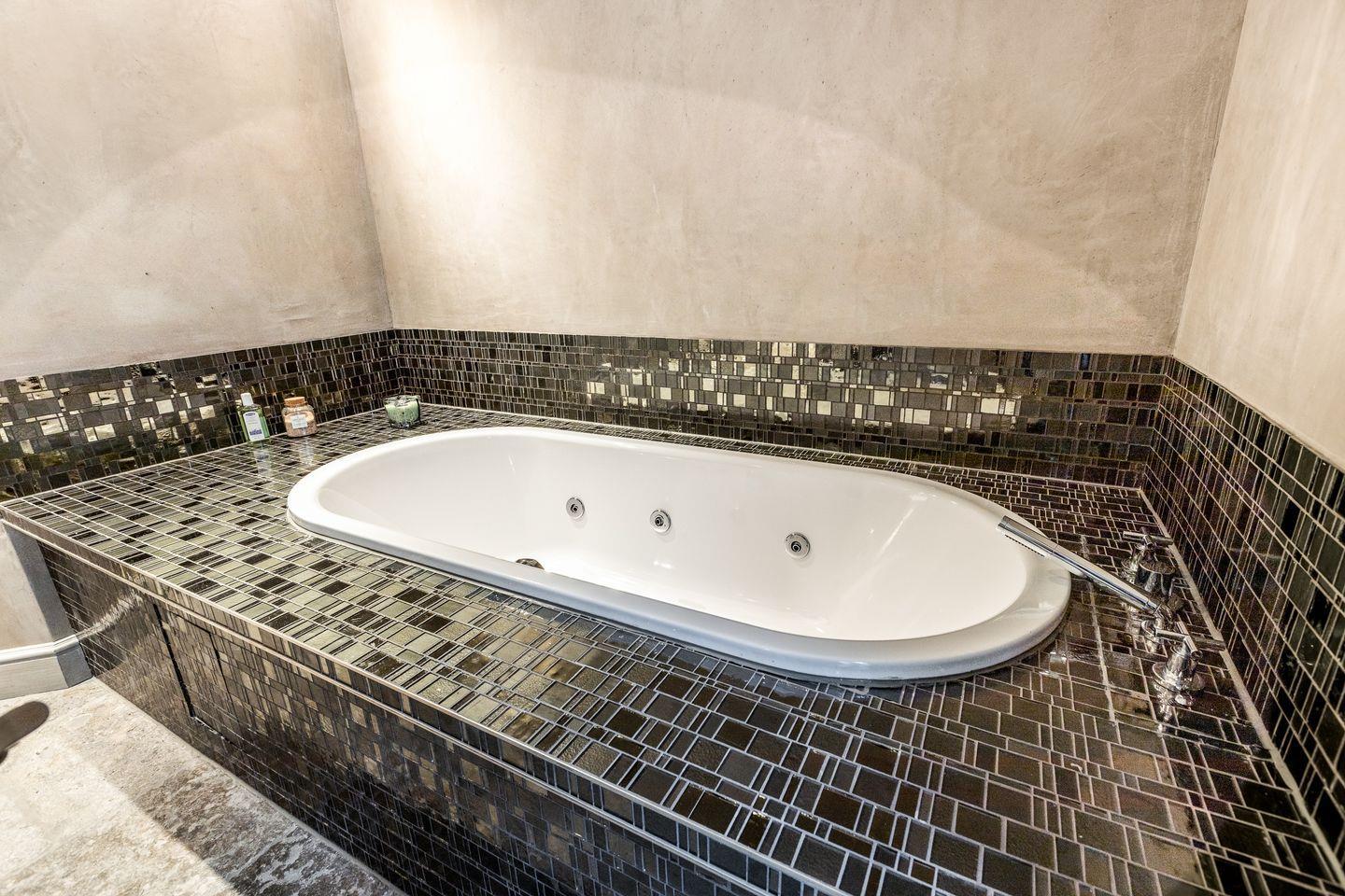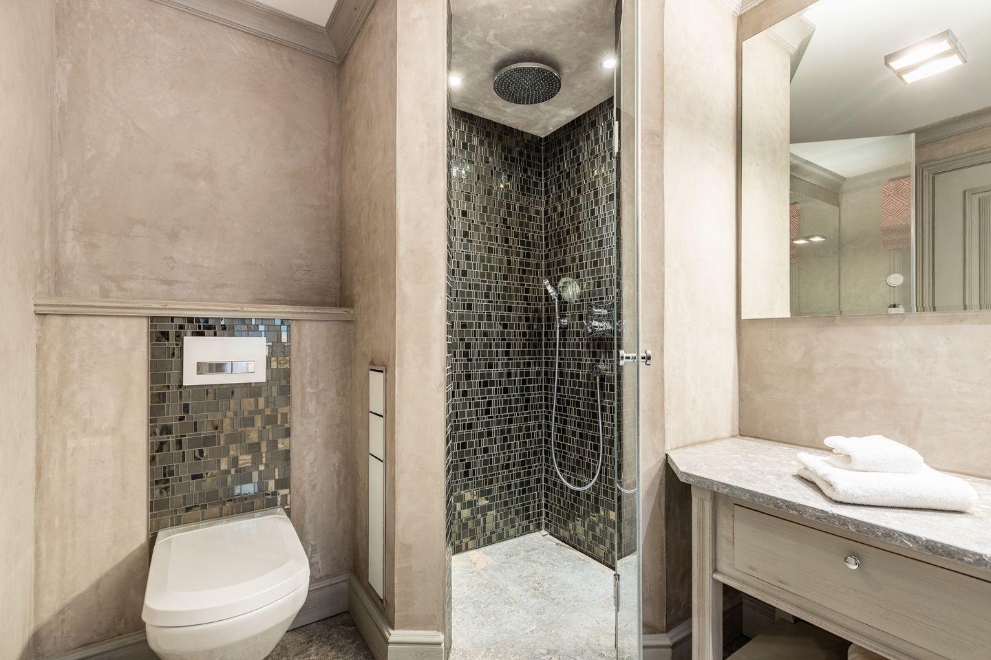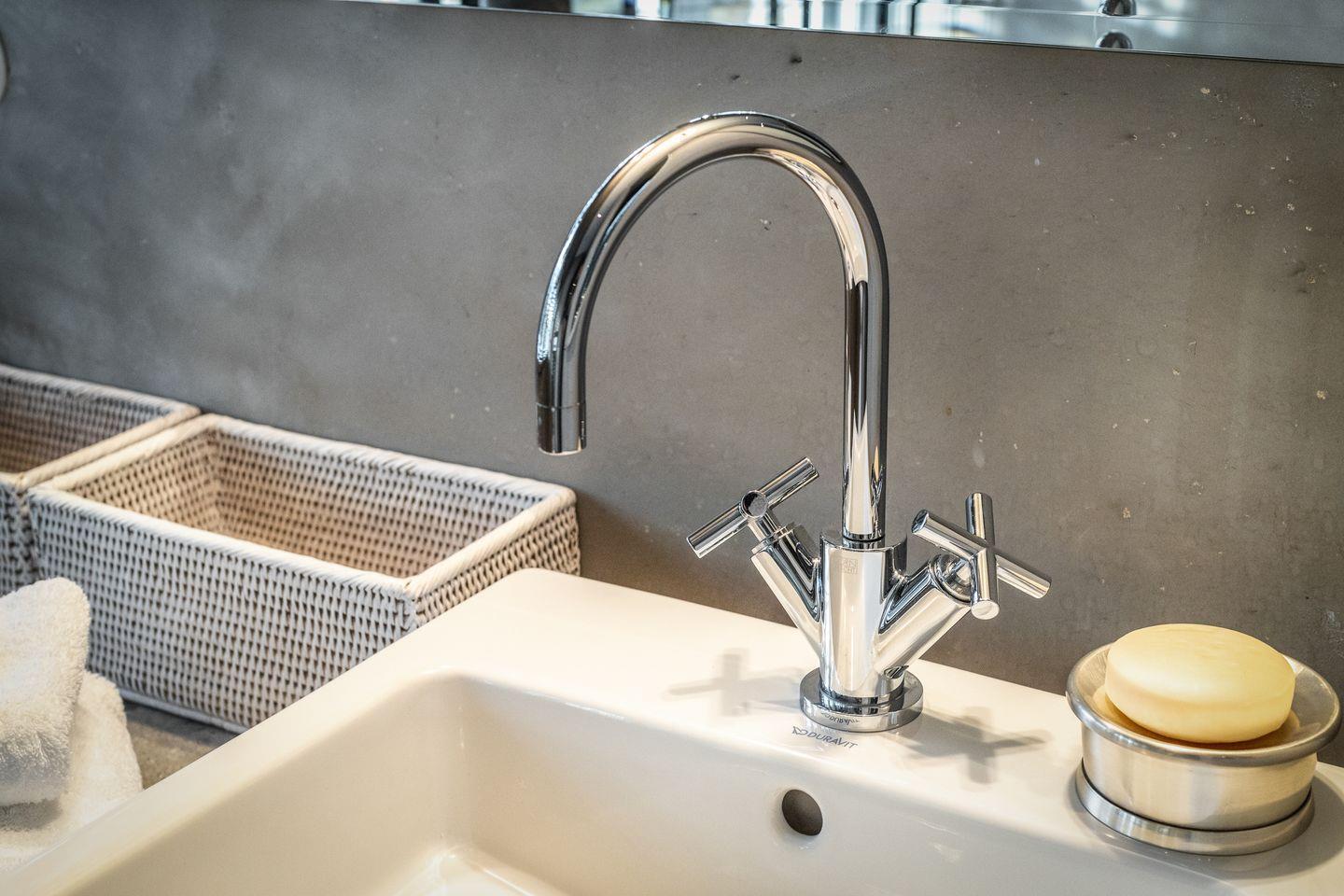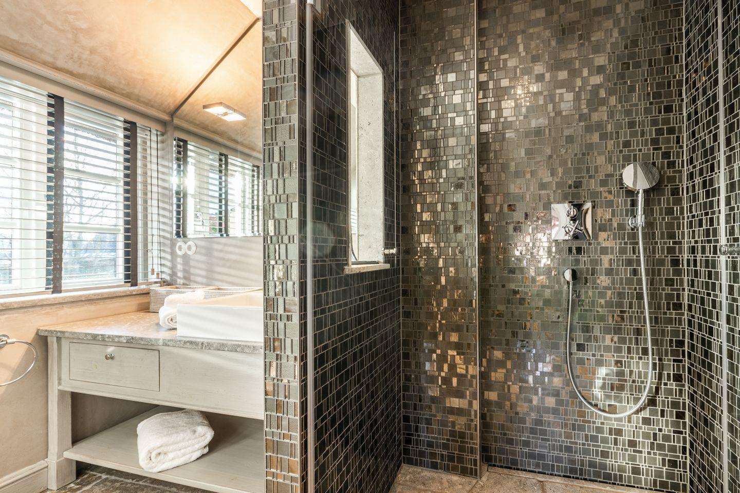 Das Haus verfügt über drei hochwertige Badezimmer mit Regenduschen sowie zwei separate Gäste-WCs. Der großzügige Wellnessbereich umfasst eine Sauna, eine Dampfsauna mit Regendusche, eine Whirlbadewanne und Ruheliegen – ein perfekter Rückzugsort für entspannende Stunden.