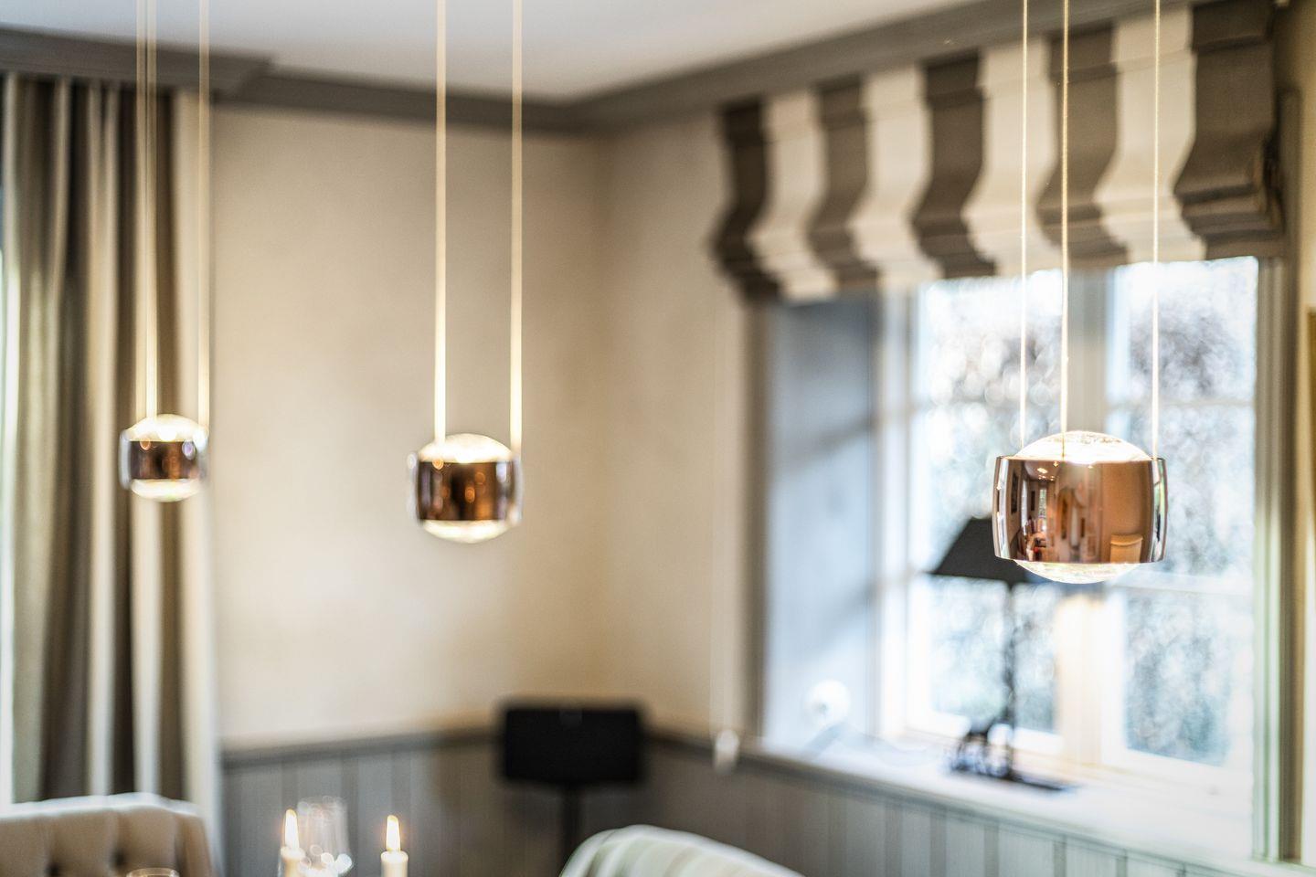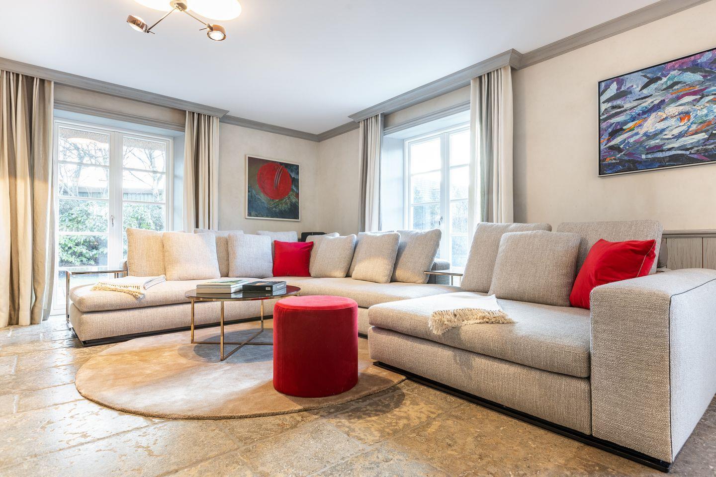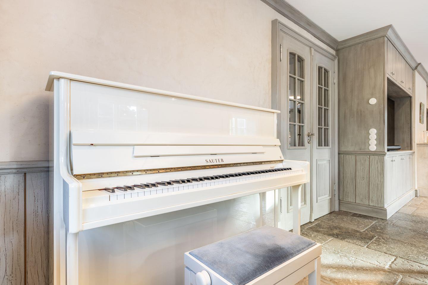 Das Wohnzimmer besticht durch eine stilvolle Minotti Sofalandschaft, einen offenen Kamin und ein edles Sauter Klavier, das zu musikalischen Momenten einlädt. Ein großer Esstisch bietet Platz für gesellige Mahlzeiten. Die Sonos-Soundanlage sorgt in allen Räumen für ein beeindruckendes Klangerlebnis. Von der Küche gelangen Sie direkt auf die Westterrasse, wo Sie in der Abendsonne entspannen können.