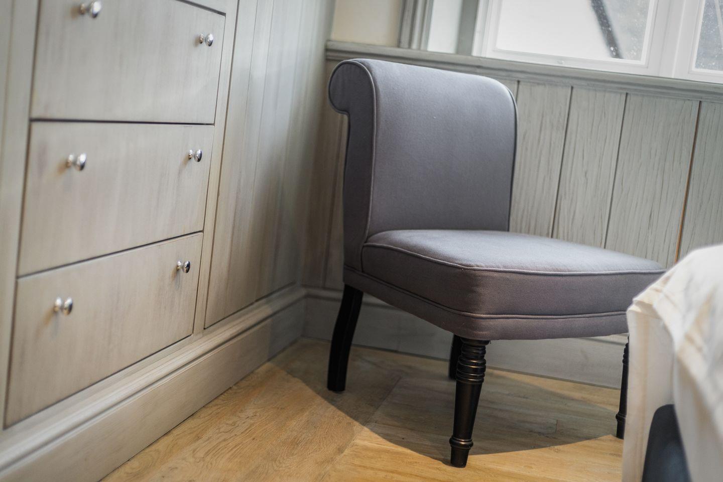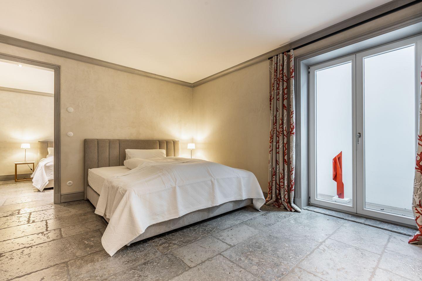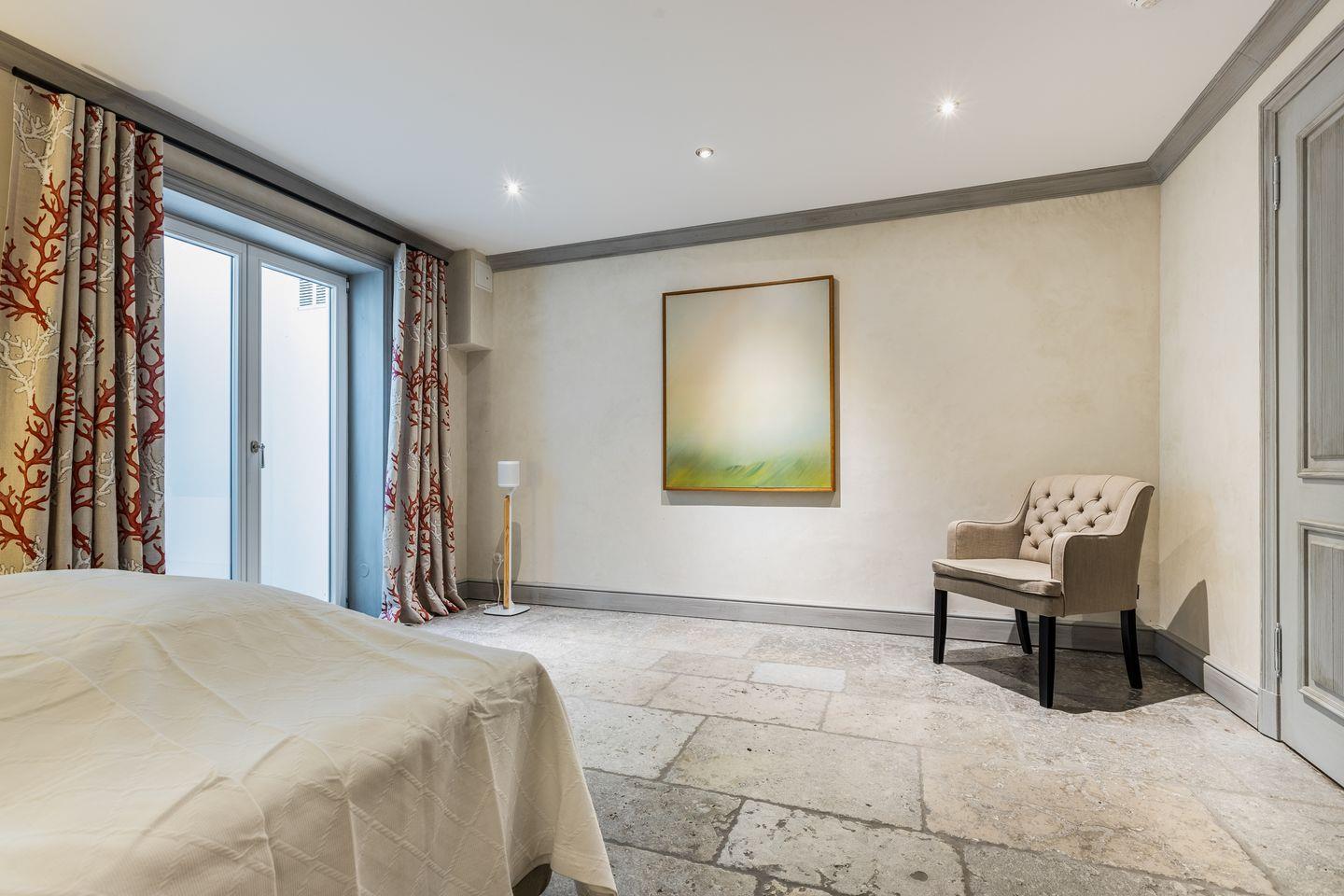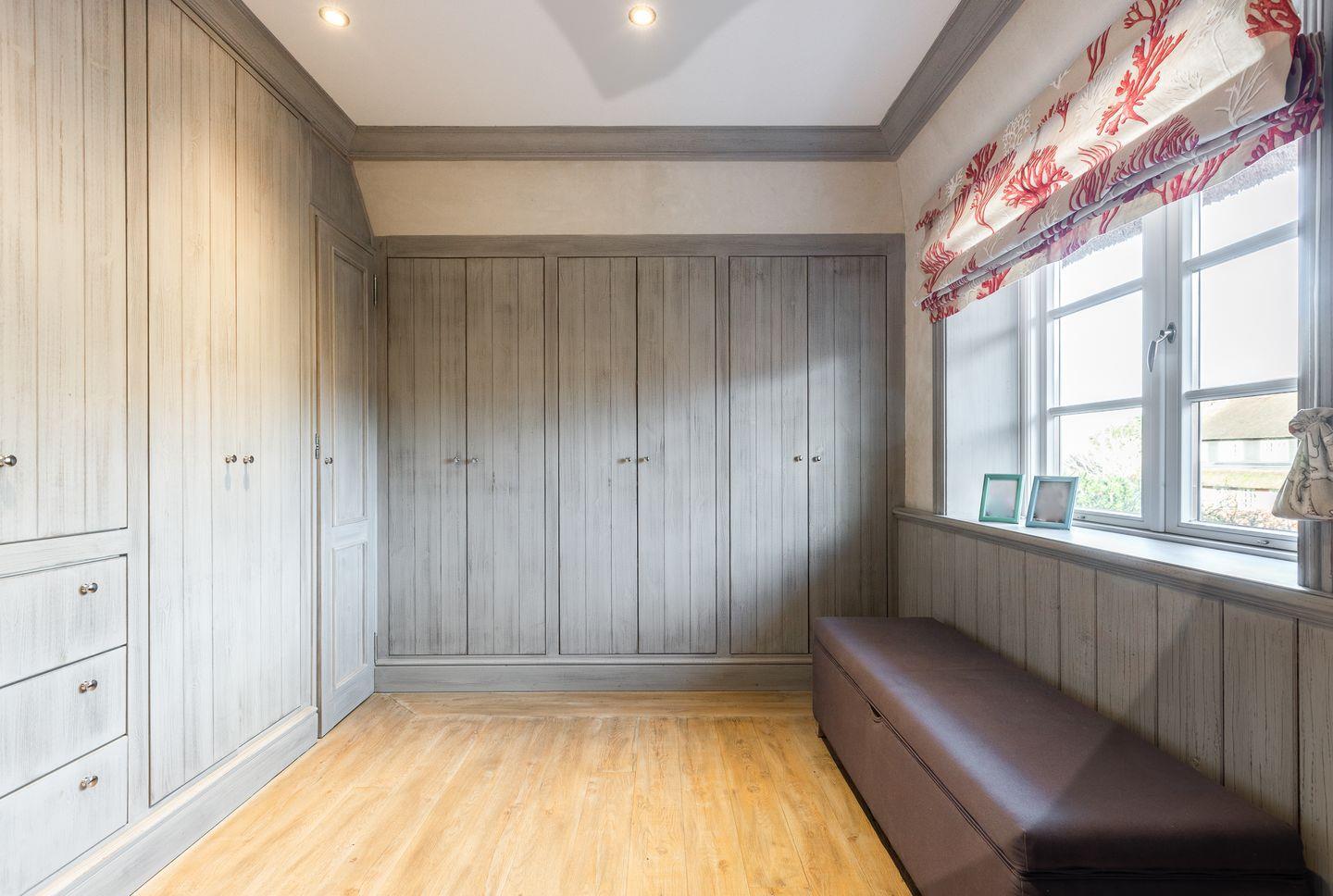 Die fünf Schlafzimmer bieten höchsten Komfort und stilvolle Details. Zwei Schlafzimmer sind mit Boxspringbetten (180x200 cm) und Kommoden ausgestattet. Zwei weitere Schlafzimmer verfügen über großzügige Boxspringbetten (200x200 cm) und begehbare Kleiderschränke sowie ein eigenes en suite Badezimmer. Ein fünftes Schlafzimmer mit Boxspringbett (180x200 cm) und einem Reiseschrank bietet zusätzlichen Schlafraum.