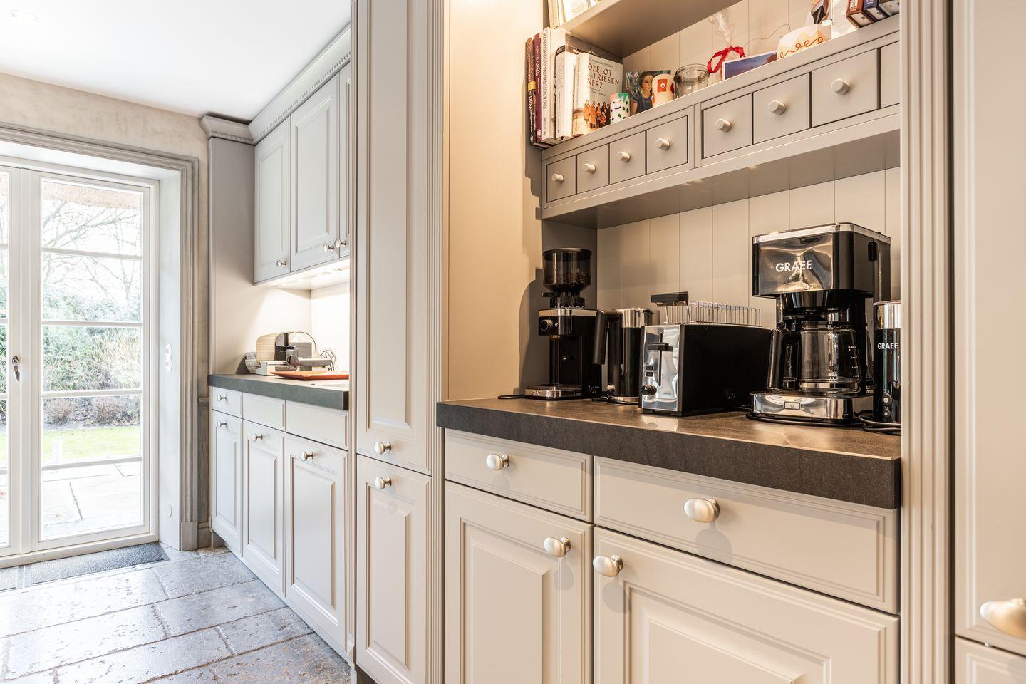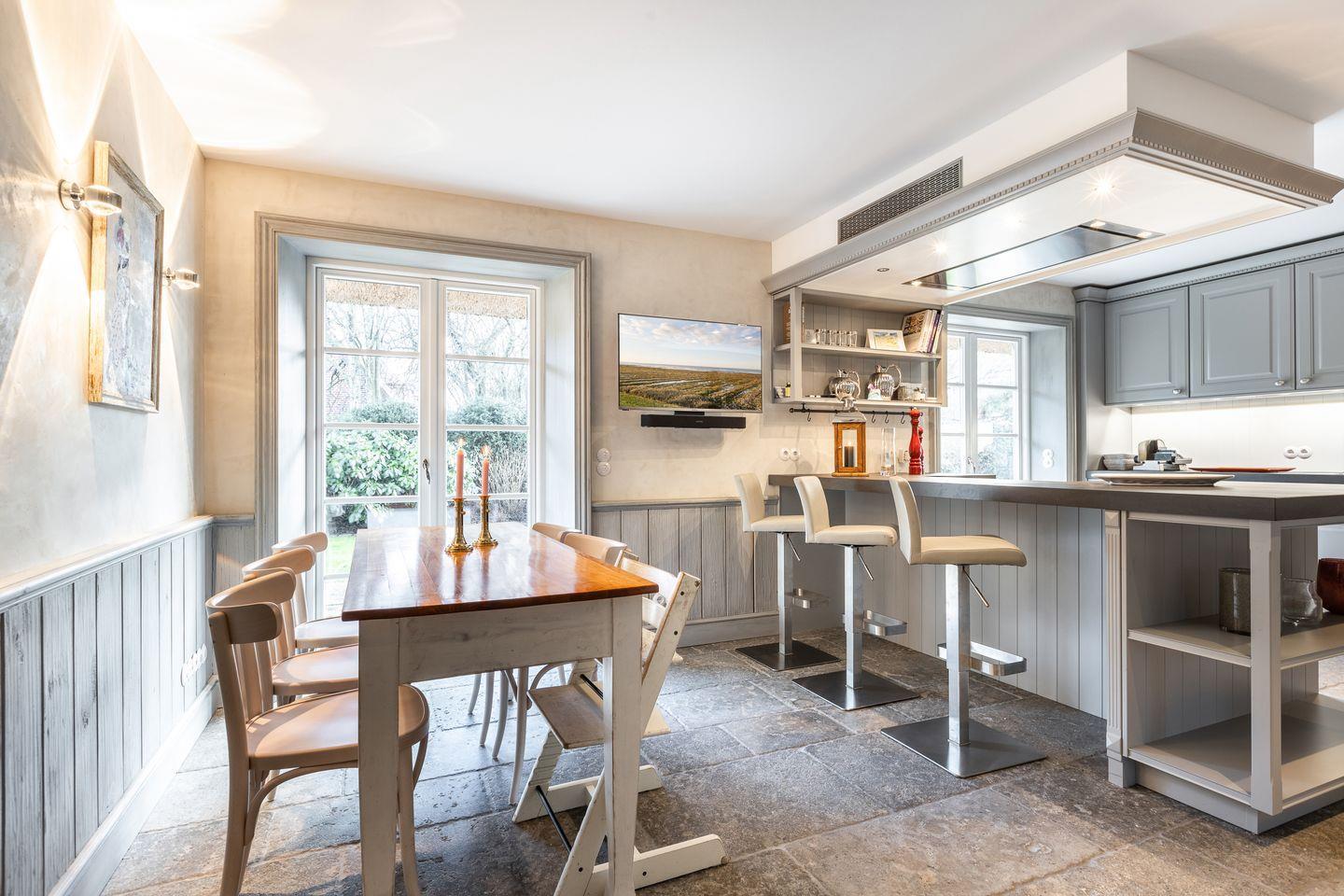 Die separate Wohnküche ist ein echtes Highlight mit hochwertigem Lacanche-Herd, zwei Kühl- und Weinschränken und einem großen Essbereich. Die Ausstattung lässt keine Wünsche offen und lädt zum gemeinsamen Kochen und Genießen ein.