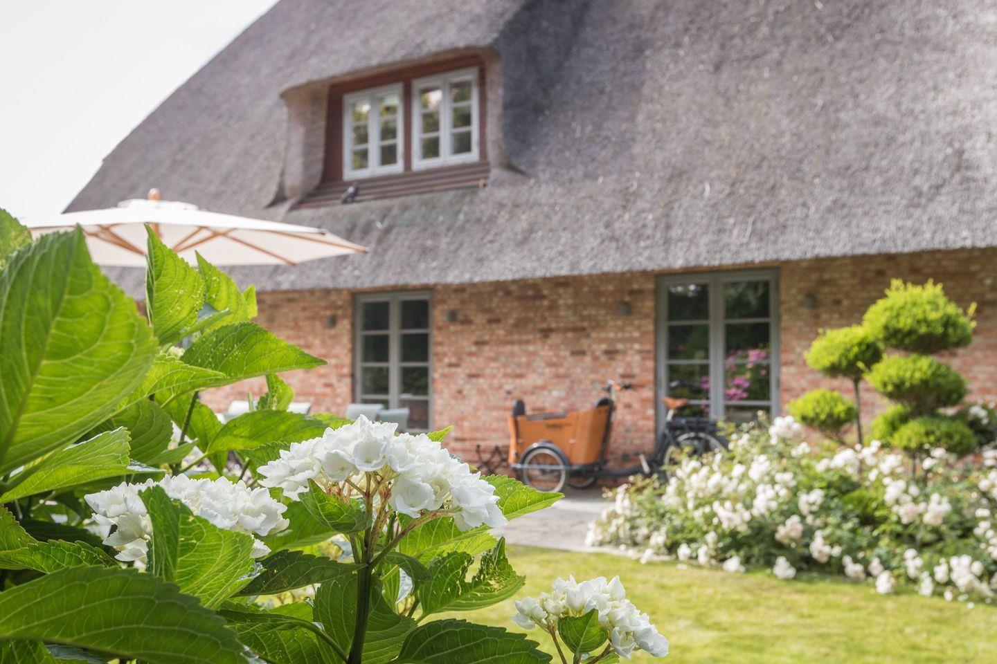 Erleben Sie den unvergleichlichen Luxus des „Hideaway Hansen Hus“ – ein Juwel mitten im historischen Kapitänsdorf Keitum. Auf rund 280 qm Wohnfläche, verteilt auf vier Ebenen, genießen Sie eine erstklassige Ausstattung und ein einmaliges Ambiente. Das exklusive Haus liegt in ruhiger Lage, umgeben von prachtvollen Hortensien und bietet auf der großzügigen Süd- und Westterrasse und im weitläufigen Garten pure Entspannung. Die geschmackvolle Inneneinrichtung und hochwertige Ausstattung lassen keine Wünsche offen – ideal für bis zu 6 Personen (8 Personen auf Anfrage).