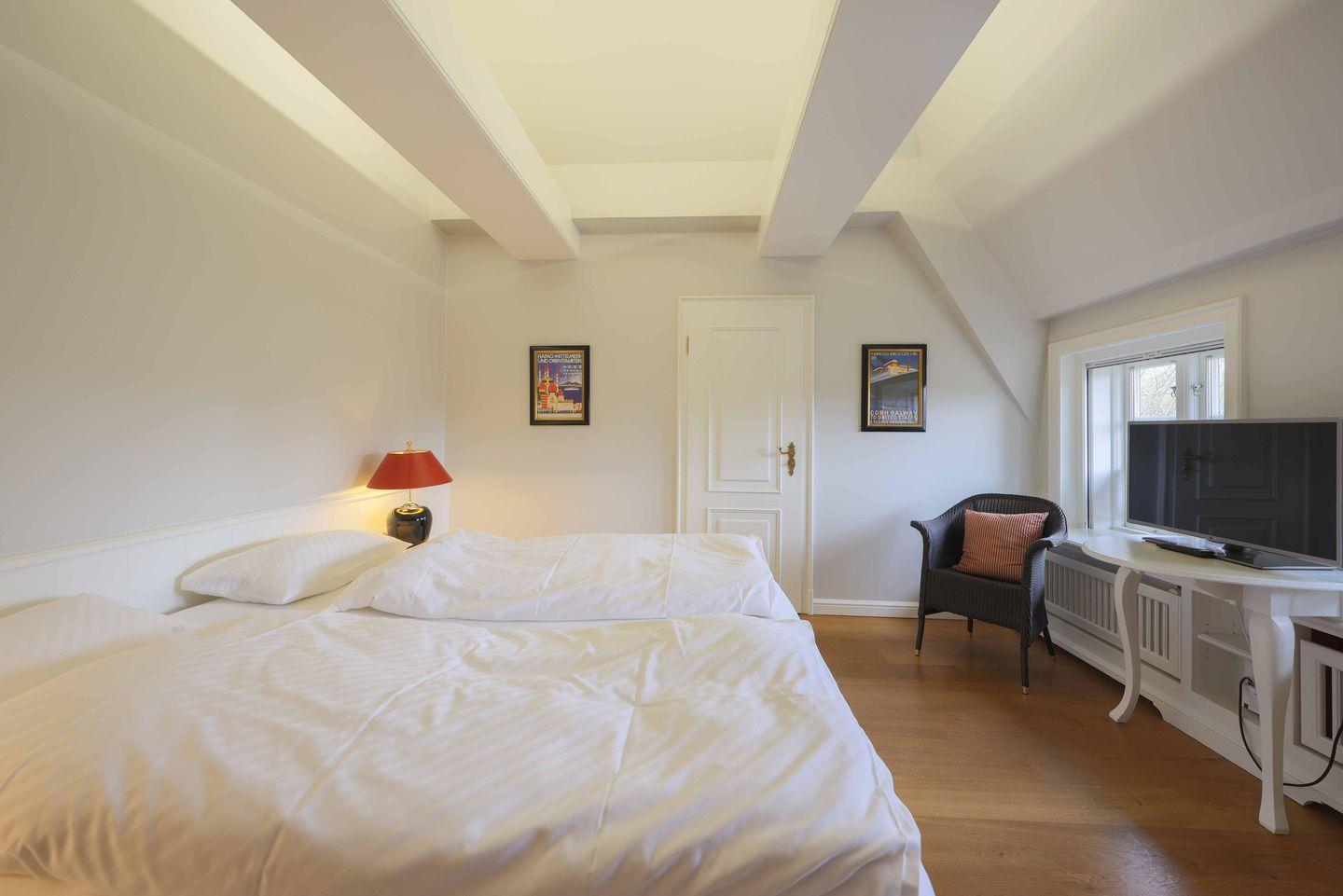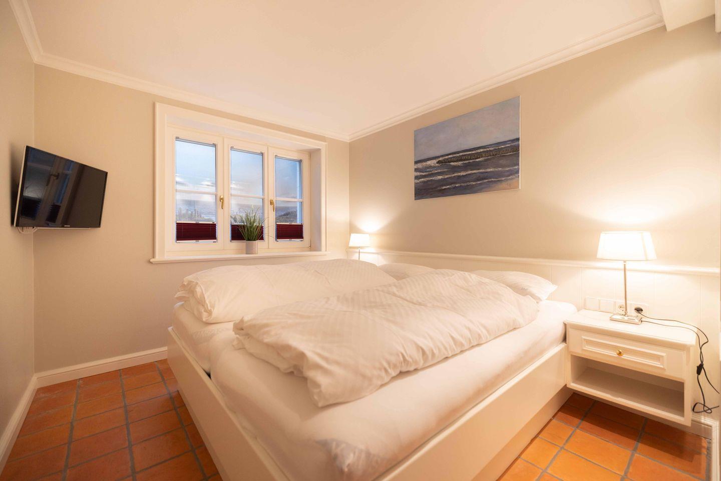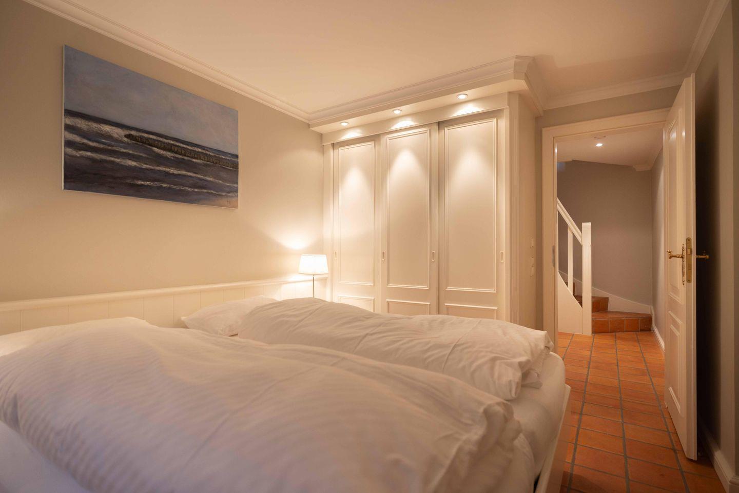 Die Unterkunft ist über den Wohnbereich hinaus mit zwei Schlafzimmern und zwei Badezimmern ausgestattet. In beiden Schlafzimmern gibt es ebenfalls einen Fernseher. Das größere Schlafzimmer (20qm) verfügt zudem über ein großzügiges Doppelbett (200x200cm) in komfortabler Höhe. Ein Safe ermöglicht das sichere Verwahren von Wertgegenständen. Zusätzliche Sitzmöglichkeiten und umfangreicher Stauraum für das eigene Gepäck runden den Raum ab. Das untere Schlafzimmer bietet ebenso viel Komfort.