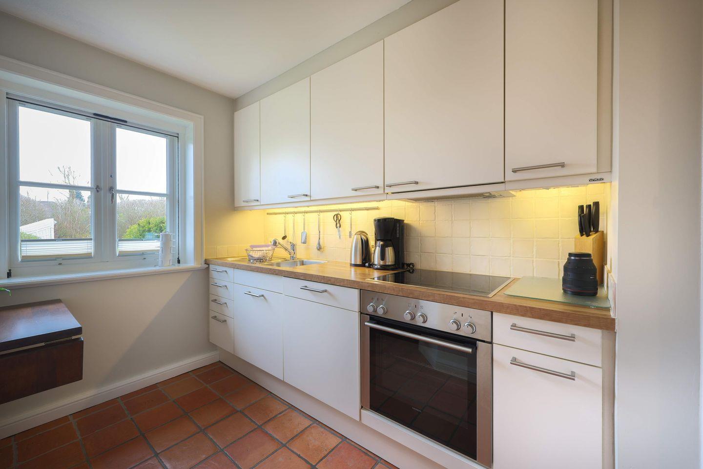 Die hochwertige Küche verfügt über eine umfangreiche Ausstattung. Neben einem Geschirrspüler, einem großen Kühlschrank, Herd und Mikrowelle und zahlreichen weiteren Küchengeräten (unter anderem ein Wasserkocher, Toaster sowie Eierkocher) stehen auch Geschirr und -Handtücher zur Verfügung. Zusätzlich besteht die Wahl zwischen einer Kapsel- und einer normalen Filterkaffeemaschine. Ein Waschtrockner ist ebenfalls vorhanden.