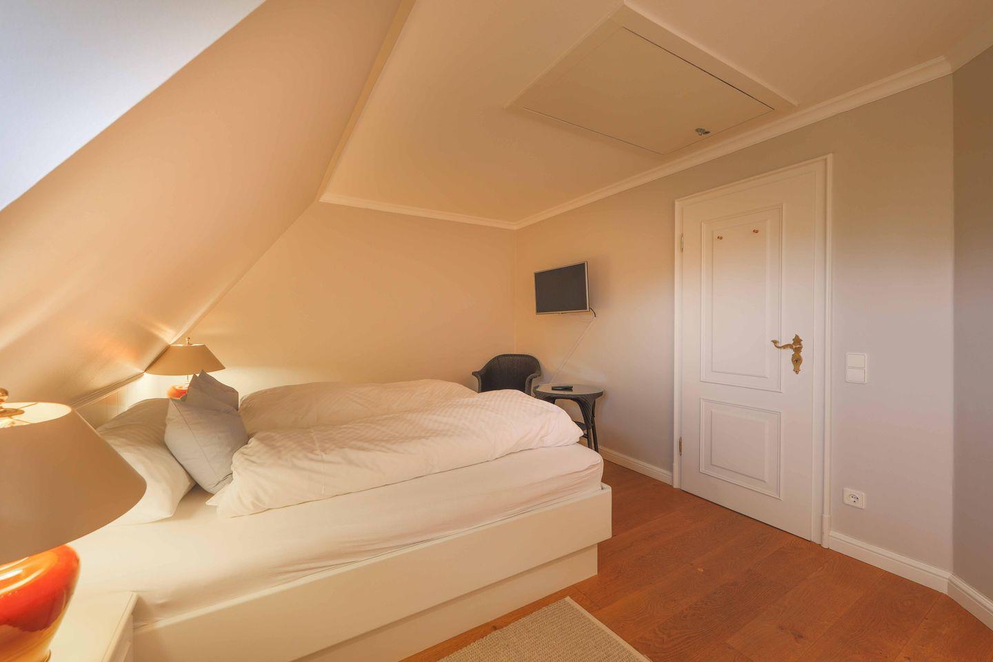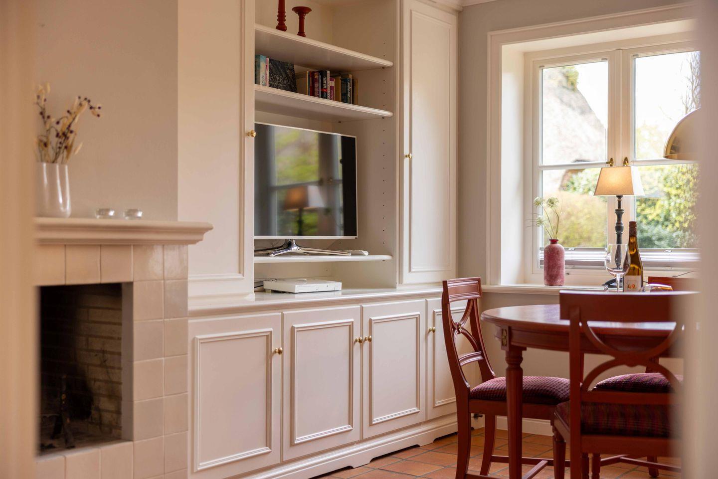 Der "Hausteil B - Kaminstube" ist ein aufwendig und zeitgemäß ausgestattetes Ferienhaus unter Reet in Keitum. Zwei Schlafzimmer und Bäder sorgen für umfangreichen Komfort für bis zu vier Gäste. Eine Sauna gehört ebenso wie moderne, technische Ausstattung zu den Vorzügen dieses schönen Hauses.