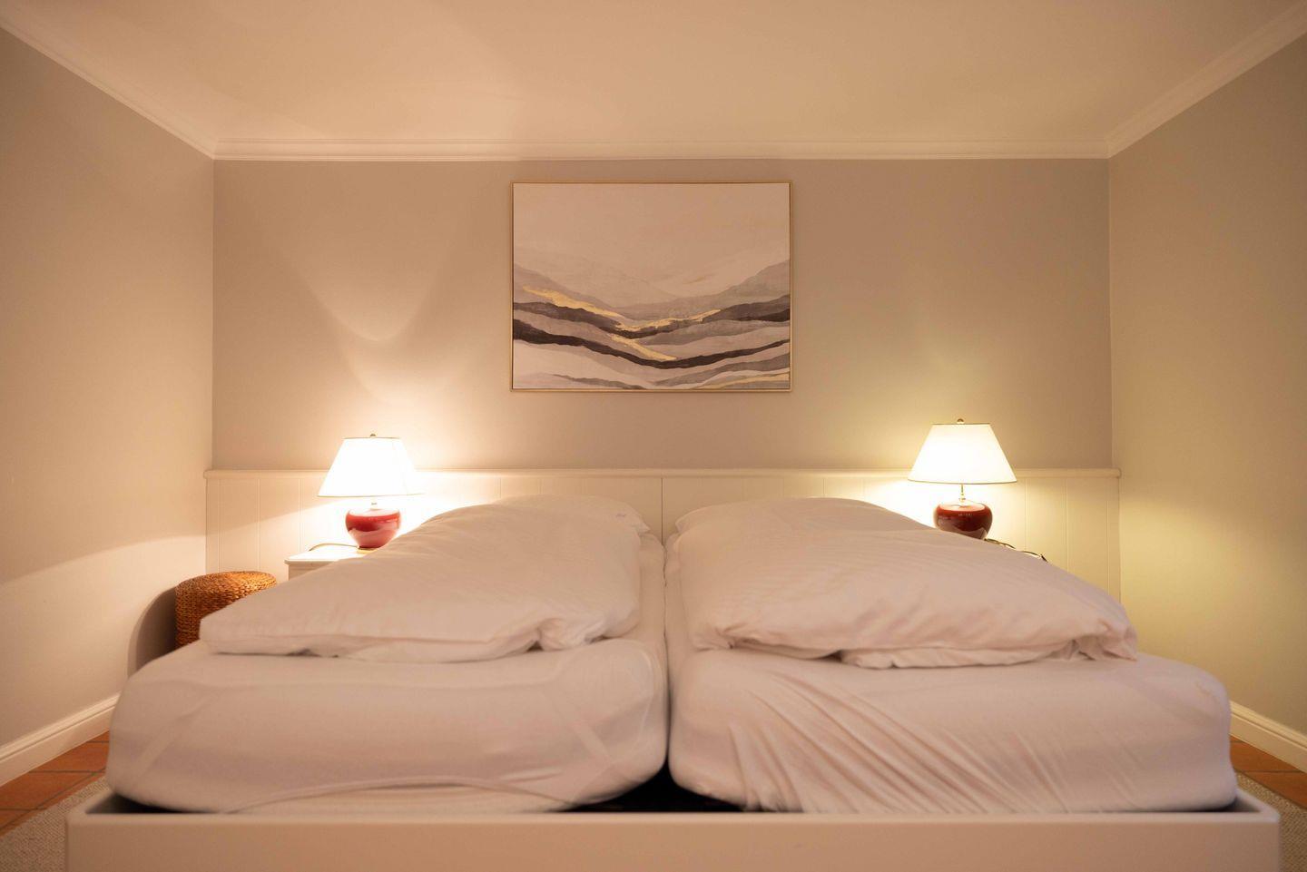 Beide Schlafzimmer der Unterkunft sind mit weiteren Fernsehern ausgestattet. Im oberen Schlafzimmer befindet sich ein Safe. Die großen Doppelbetten (200x200cm) sorgen für besonderen Schlafkomfort. Kleiderschränke bieten zusätzlichen Stauraum.