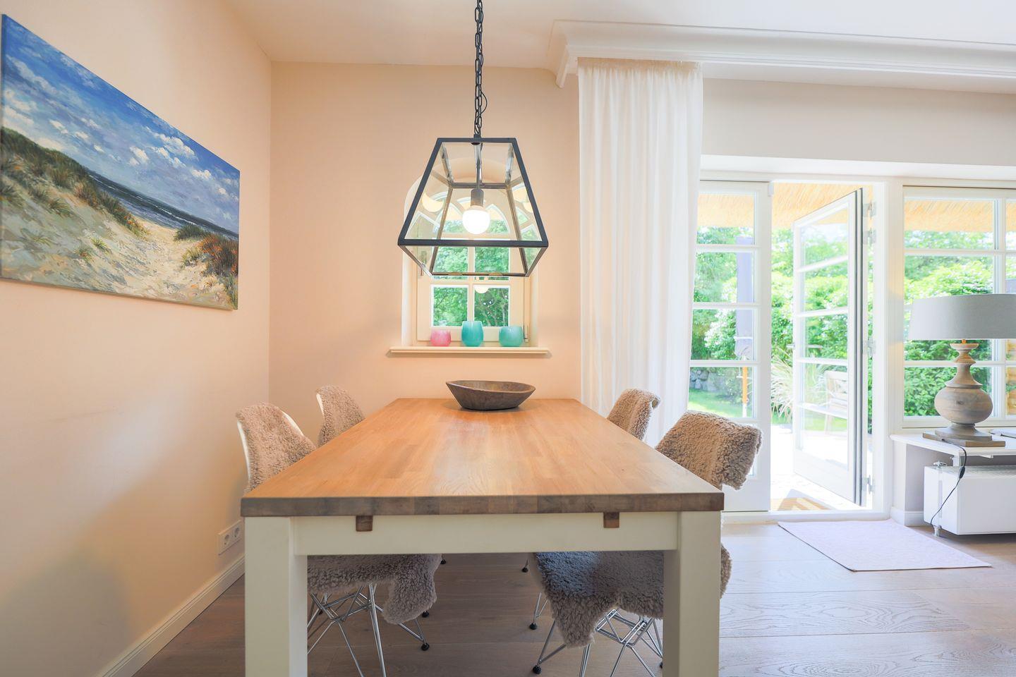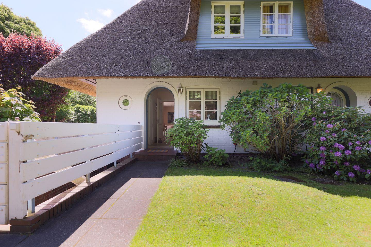 Idyllisches Reetdachhaus in Keitum mit großem Garten, Sauna und modernem Design – ein perfekter Rückzugsort für Genießer.