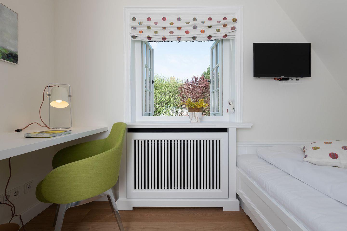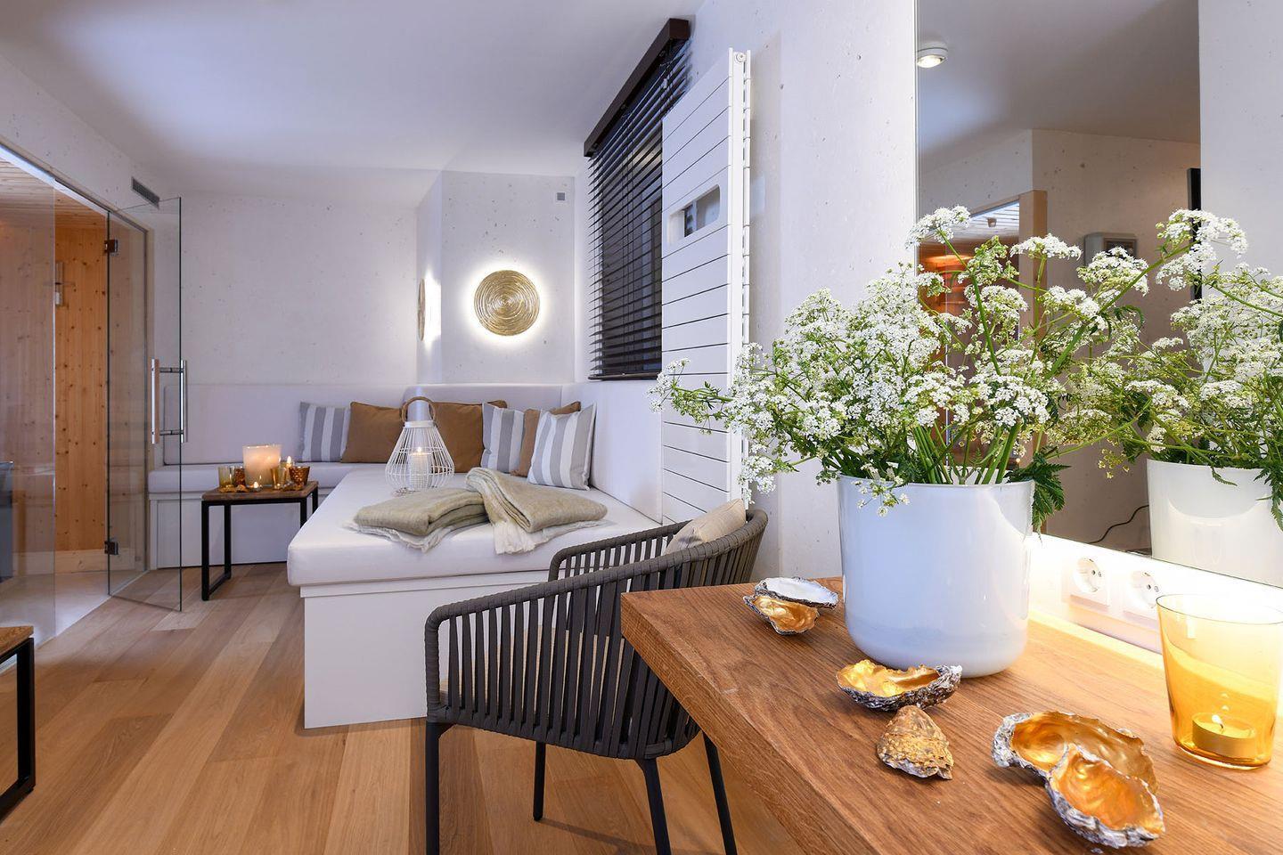 Das Ferien Domizil unter Reet an der Bahnhofstrasse 22 wurde im Frühjahr 2019 umfassend und hochwertig renoviert. Es gilt als Geheimtipp unter den Wellness-Fans. Bis zu fünf Personen finden hier auf vier Ebenen und 125 m² ausreichend Platz. Der 300 m² große Garten und die nach Westen ausgerichtete Terrasse bieten zusätzlichen Raum zur Entspannung. Der moderne Hausteil unter Reet erwartet seine Gäste mit vielen schönen und einladenden Plätzen. Im Wohnzimmer sorgt ein Kachelofen für wohlige Wärme und zaubert einen Lieblingsplatz auf dem gemütlichen Sofa. Der große Esstisch verbindet die offene und umfangreich ausgestattete Küche mit dem Wohnbereich. Auf drei Ebenen befinden sich moderne Bäder. Das Herzstück der Wohnung ist im Souterrain zuhause – ein privater, großzügig über zwei Räume sich erstreckender Wellnessbereich. Es ist der ideale Rückzugsort nach einem wind- und wettererprobten Tag auf der Insel. Mit viel Liebe für Details wurden Möbel und Accessoires von sensibler Hand einer Sylter Innenarchitektin ausgesucht. In der Verwendung von Farben wie Blau-, Beige- und Grautönen und der Gestaltung der Räume wurde sehr viel Wert daraufgelegt, dass die Gäste sich wohlfühlen können. Wer möchte Fan werden?