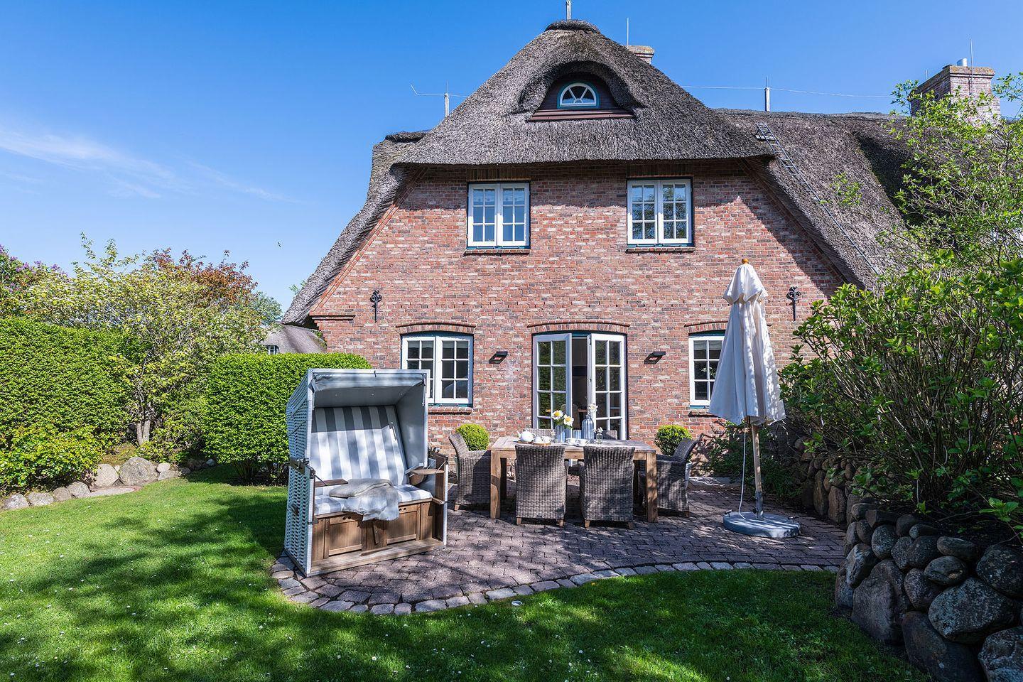 Luxuriöses Ferienhaus unter Reet in Keitum mit Sauna, Garten und moderner Ausstattung für entspannte Tage.